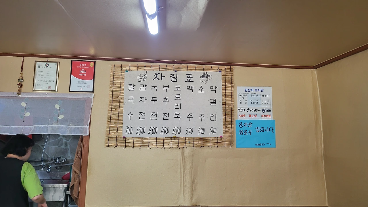 손으로 대충 적은 메뉴판(차림표)이 정겹다.