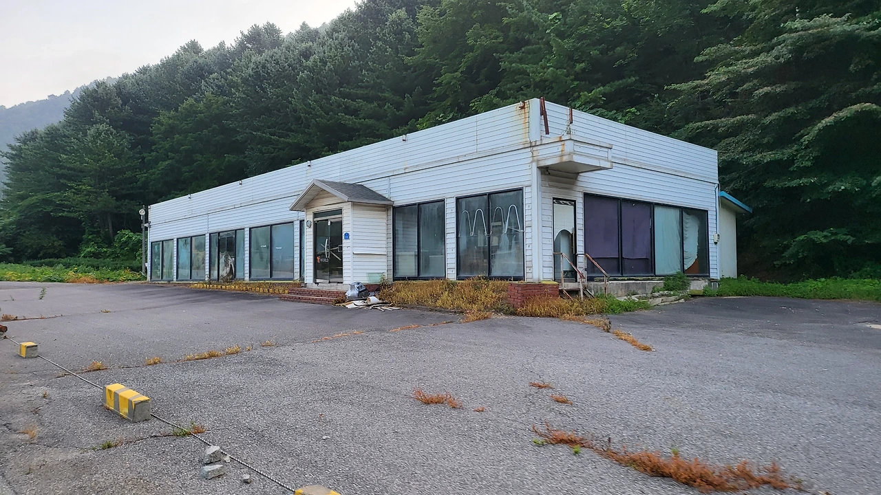 고성 알프스 스키장의 폐장으로 인근 스키숍과 식당들이 폐허가 되어 있다.