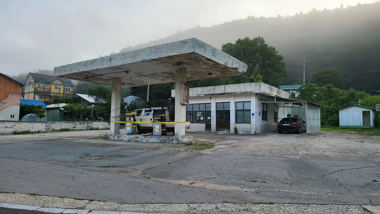 한계령 도로엔 차량 소통이 많지 않아 주유소마저 문을 닫았다.