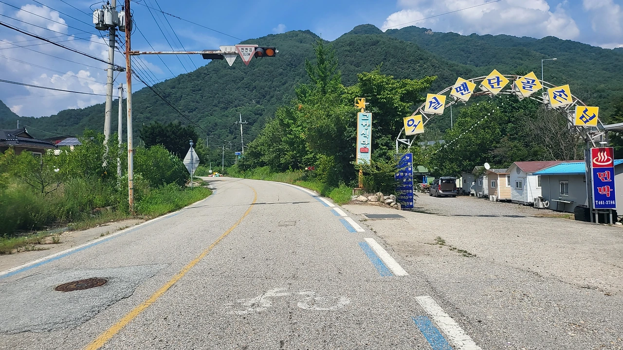 폐업한 설악산수 공장 쪽으로 난 구도로를 타고 달린다.