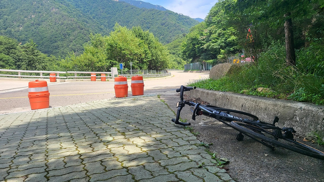 맘 같아선 계곡 안으로 들어가 발 담그며 쉬고 싶었지만 더 더워지기 전에 라이딩을 끝낸 후 시원한 맥주 한 잔 마시는 걸로 목표를 두고 달렸다.