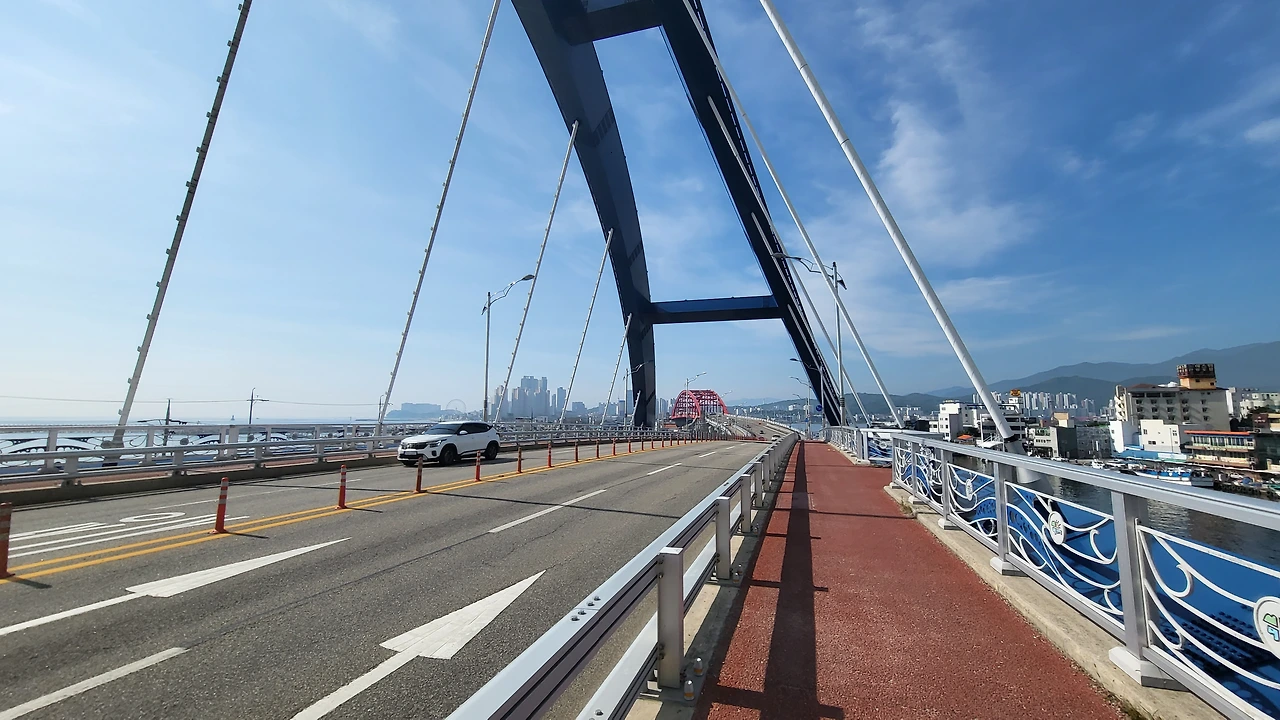 교량 위에서 사진을 촬영하고 있는 라이더 두 명을 봤다.