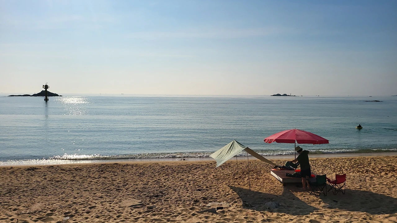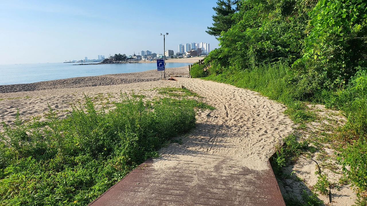이른 시간이라 해수욕장엔 사람들이 많지 않다.