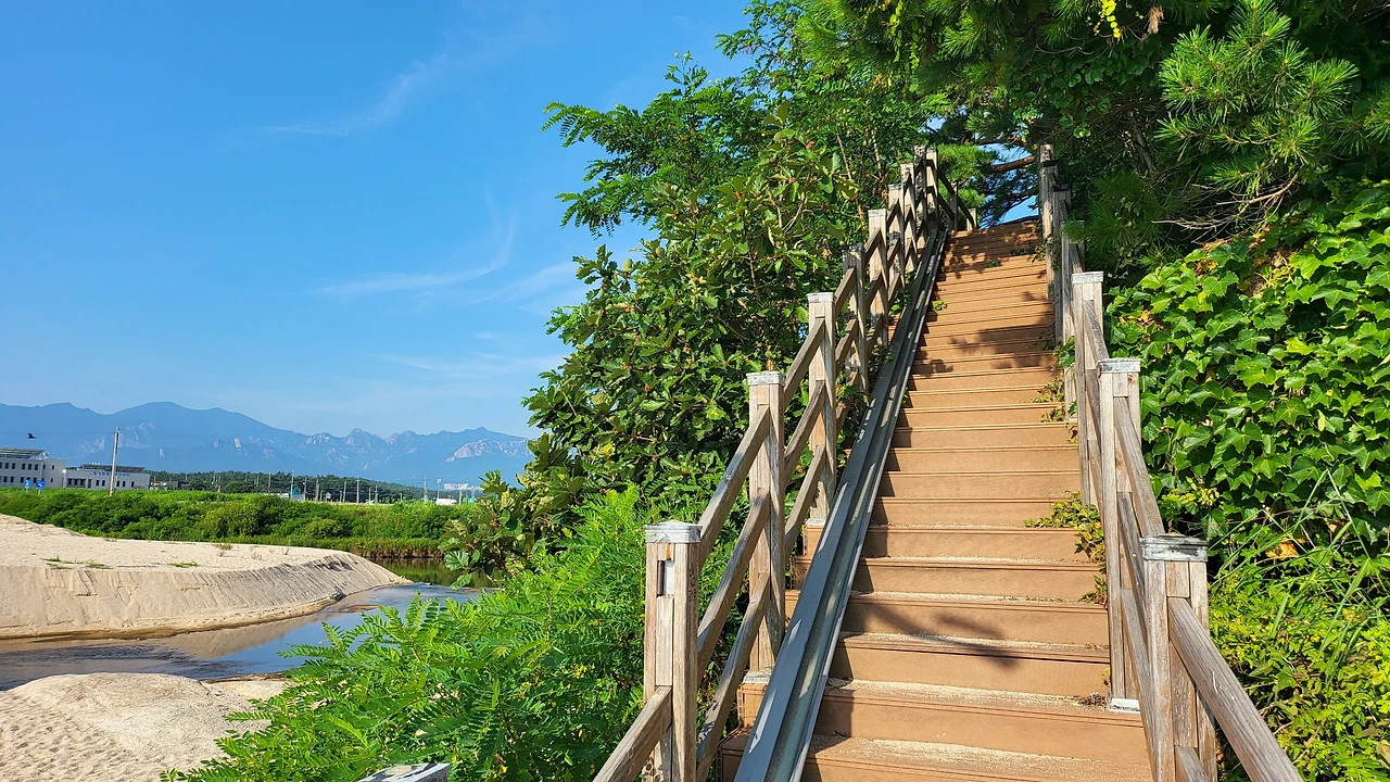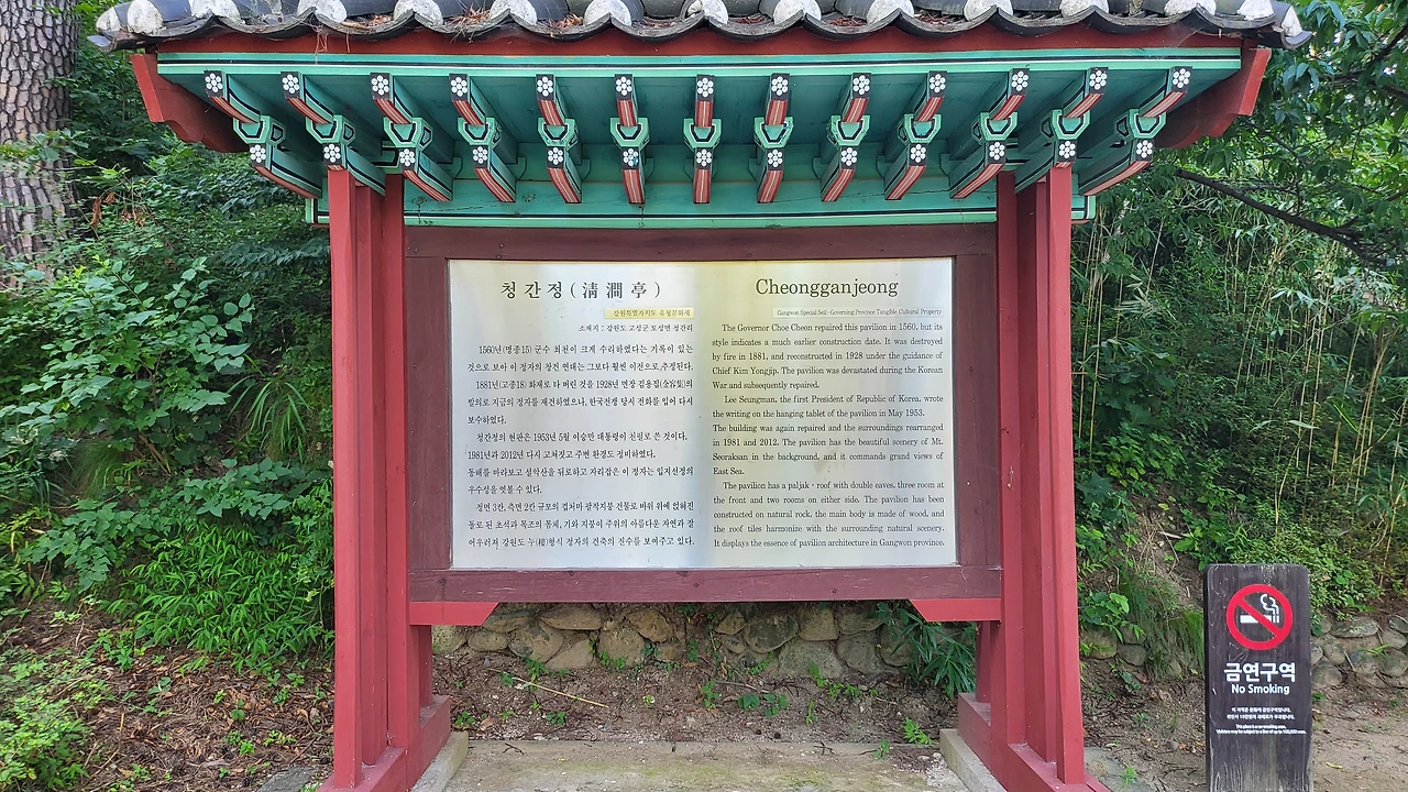 자전거도로가 끊겨 자전거를 들고 계단을 올라가니 청간정이 나타났다.