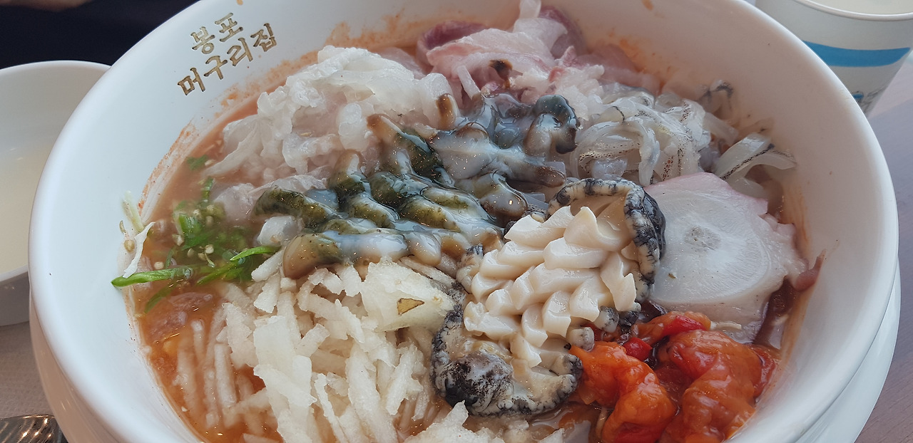 전복모듬물회 1인분, 성게비빔밥 1인분.