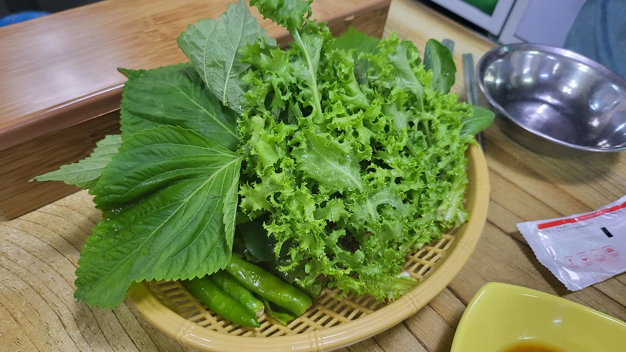 가짓수를 세어보니 쌈채소가 무려 6가지다.