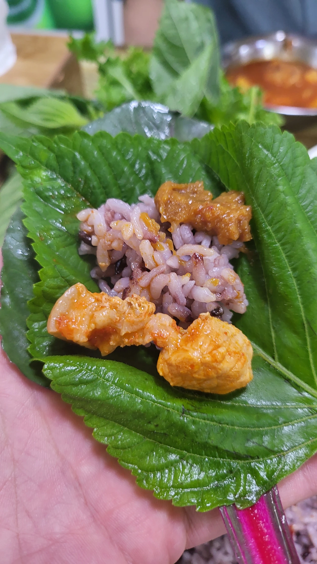 열심히 쌈도 싸서 먹고,