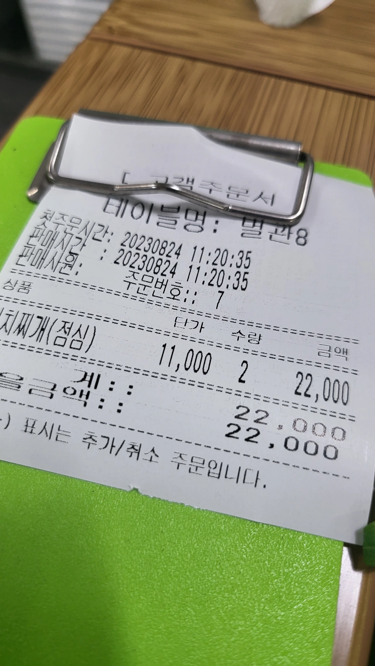 둘이서 김치찌개로 배 터지게 먹고 나왔는데 22,000원이다.