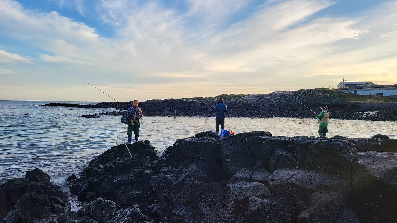 다음날 저녁엔 루어대에 찌낚시채비를 해서 섭지코지 근처 온평리 해변으로 갔다.