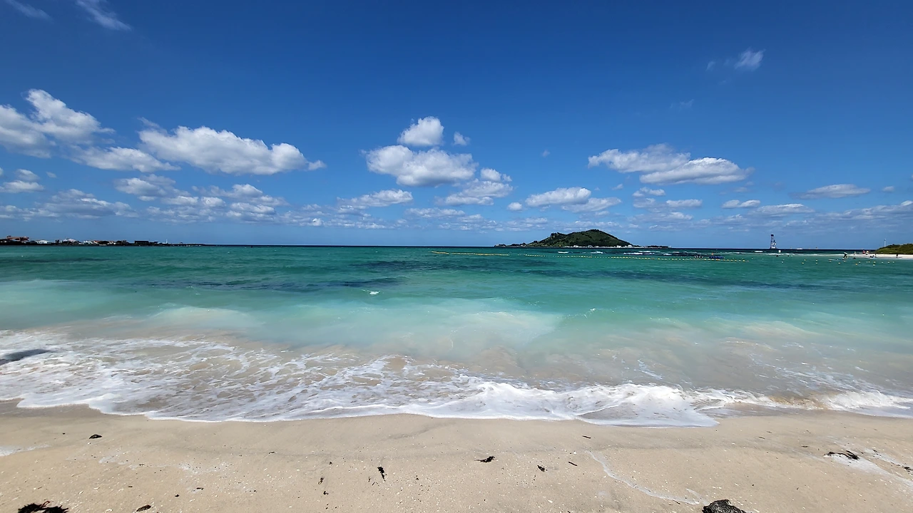 김녕해수욕장 모래밭을 덮어 두었던 포장을 벗겨내니 이제야말로 멋진 김녕의 모습을 볼 수 있다.