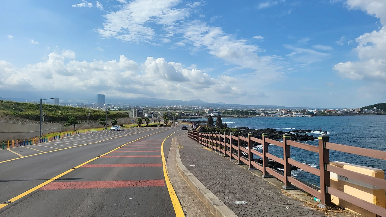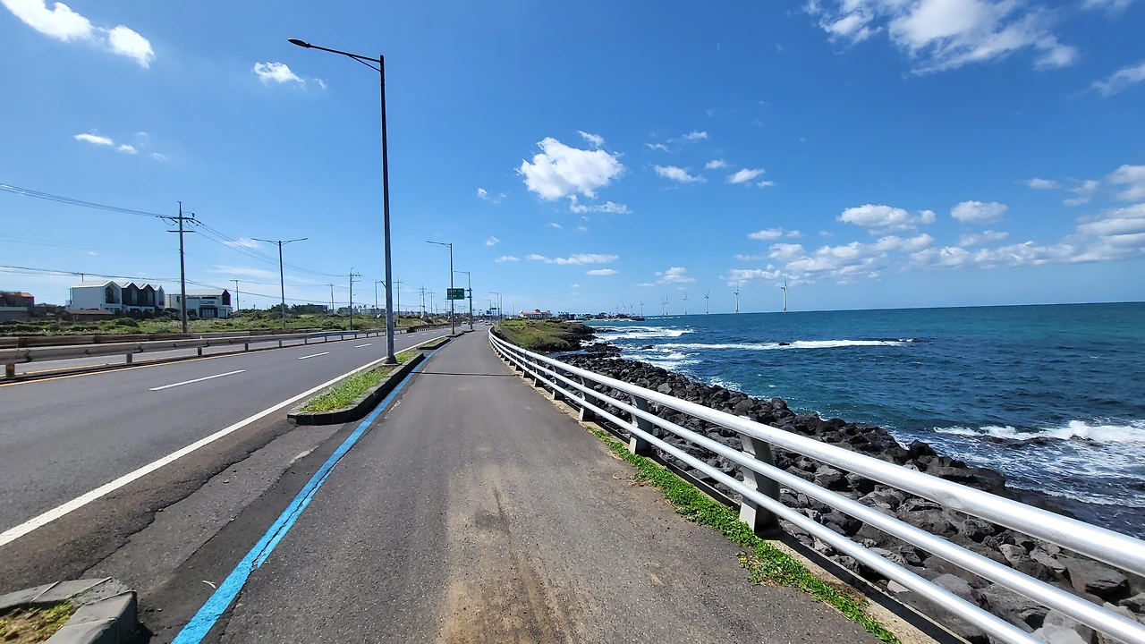 도두항을 향해 나름 긴 다운힐이 이어지고 이호테우 방향으로 이어지는 해안도로를 달린다.