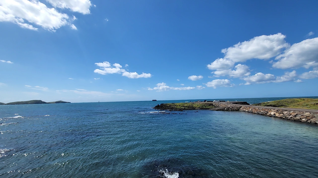 육지 쪽은 양식장이 끝도 없고, 바다 쪽은 큰남방돌고래를 볼 수 있는 해안이다.