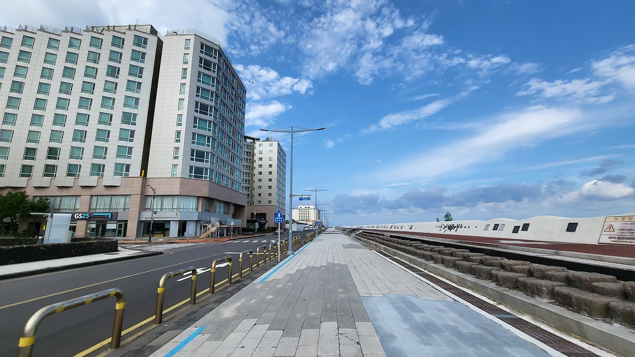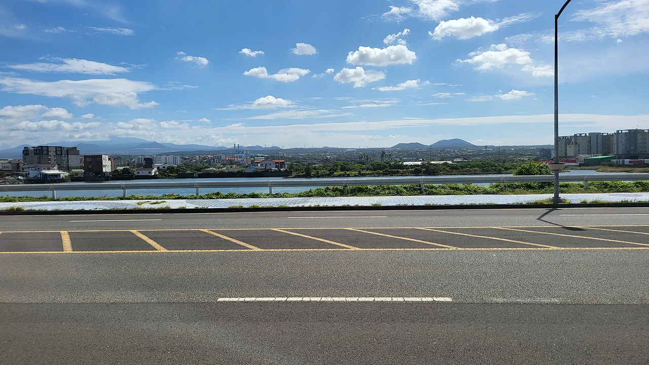 발전소 옆으로 난 길을 따라 달리면 제주도심이 펼쳐진다.
