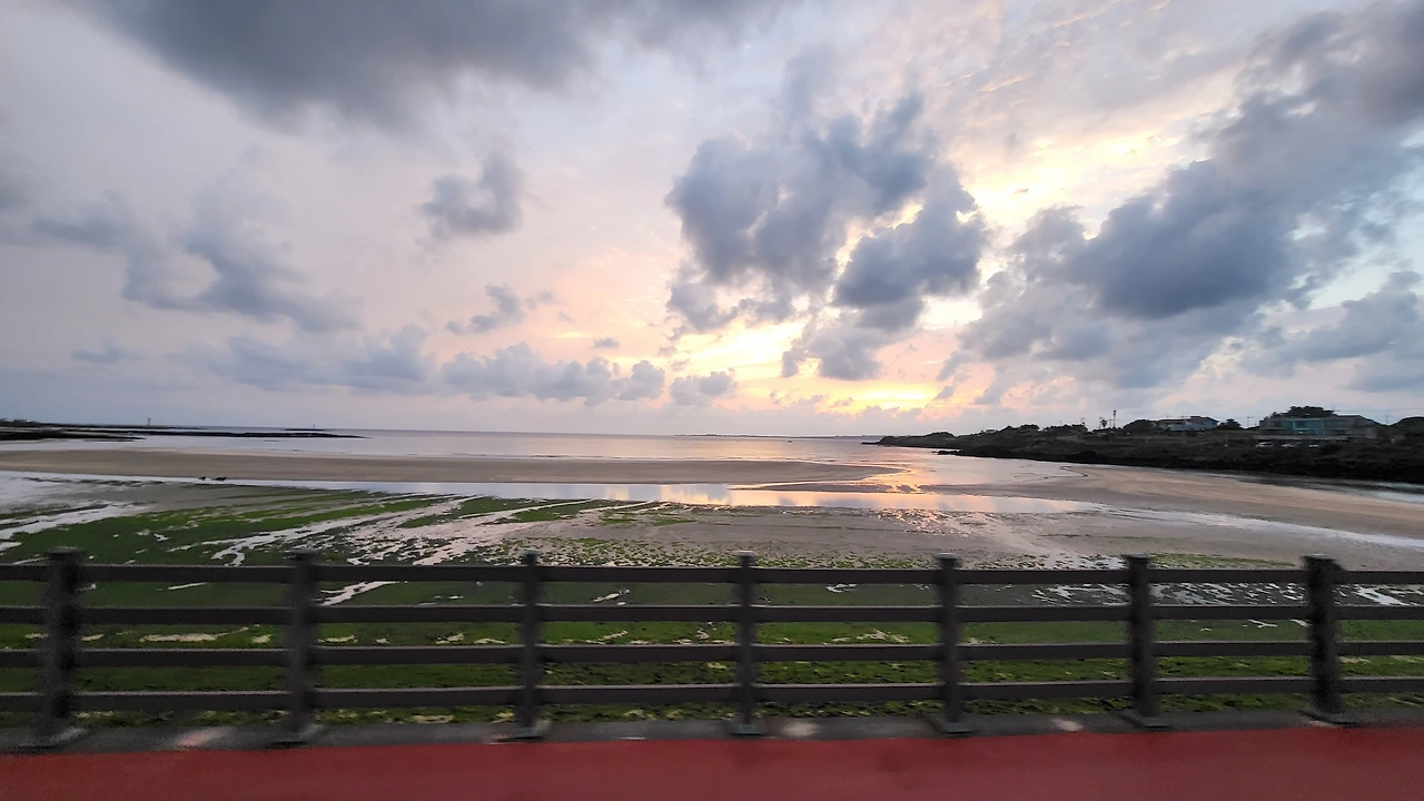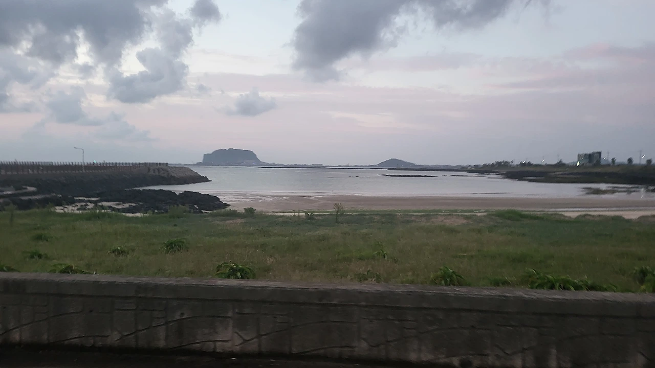 성산에서 시작된 라이딩이라 멋진 일출을 기대했지만 구름이 낮게 깔려 딱히 멋진 풍경은 기대할 수 없었다.