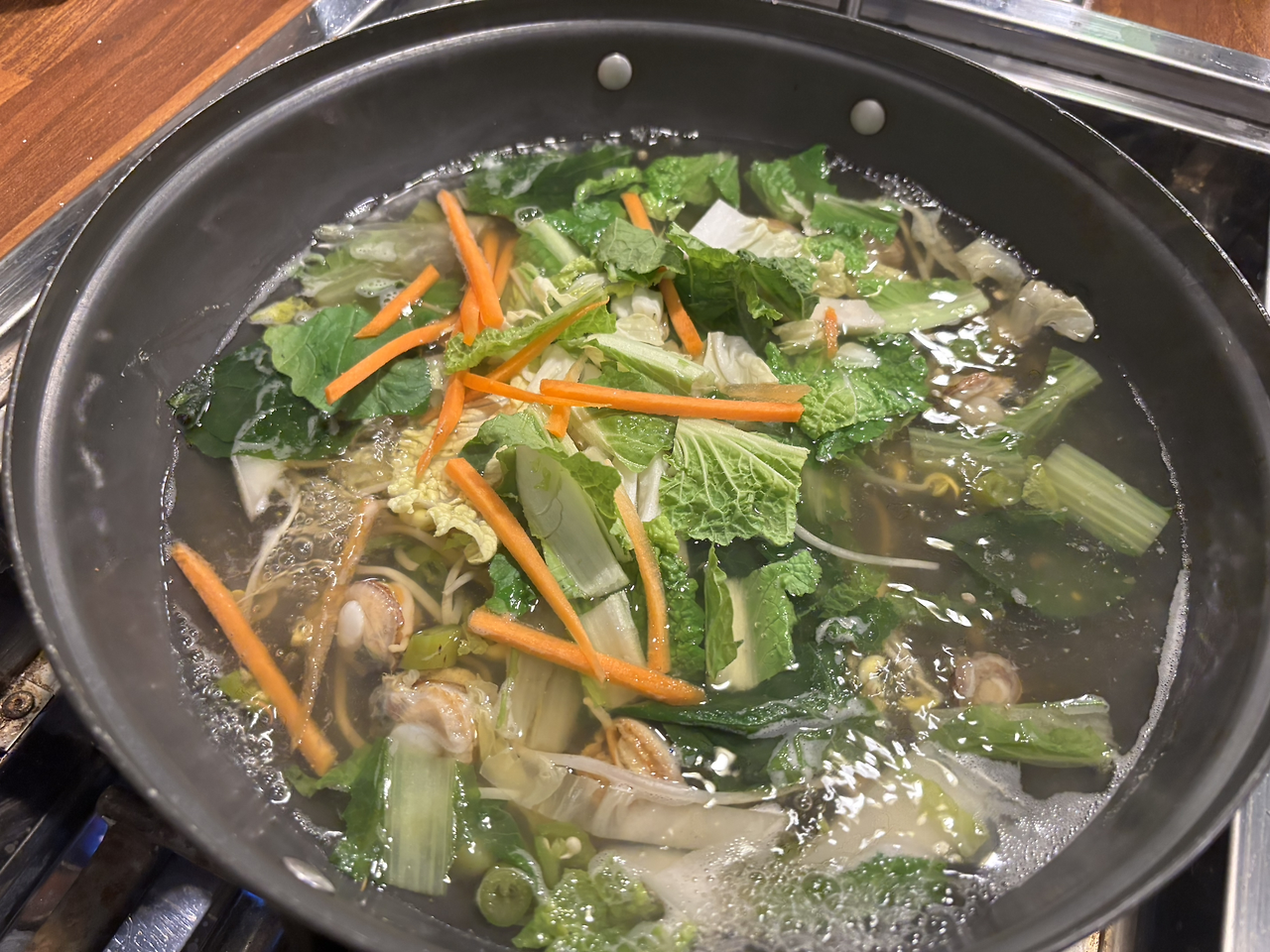 가리비 삶은 국물이 너무 아까우니 이걸 포기할 수 없었던 거다.