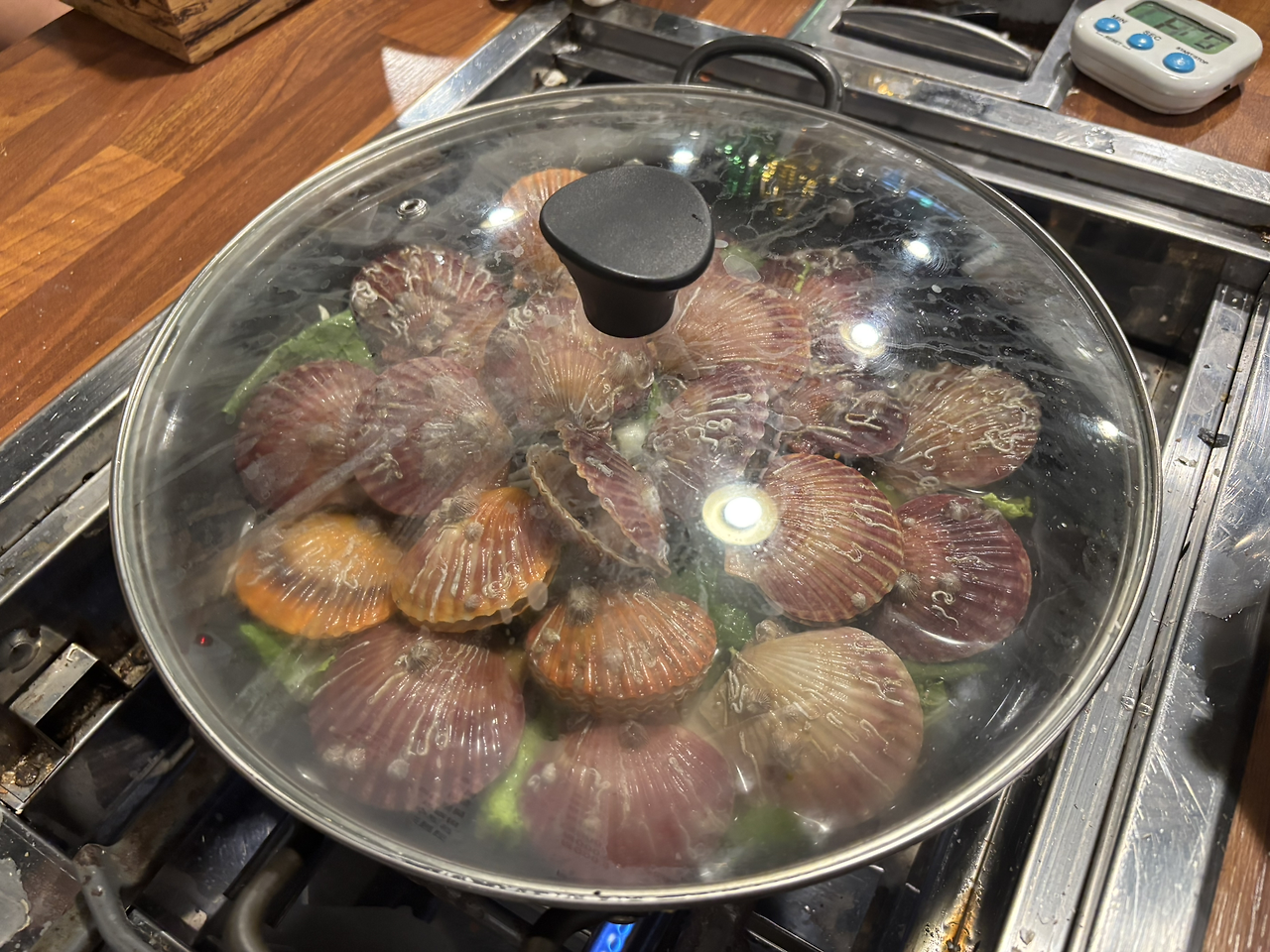 아무튼 가리비가 입을 벌리는 게 보이기 시작했다.