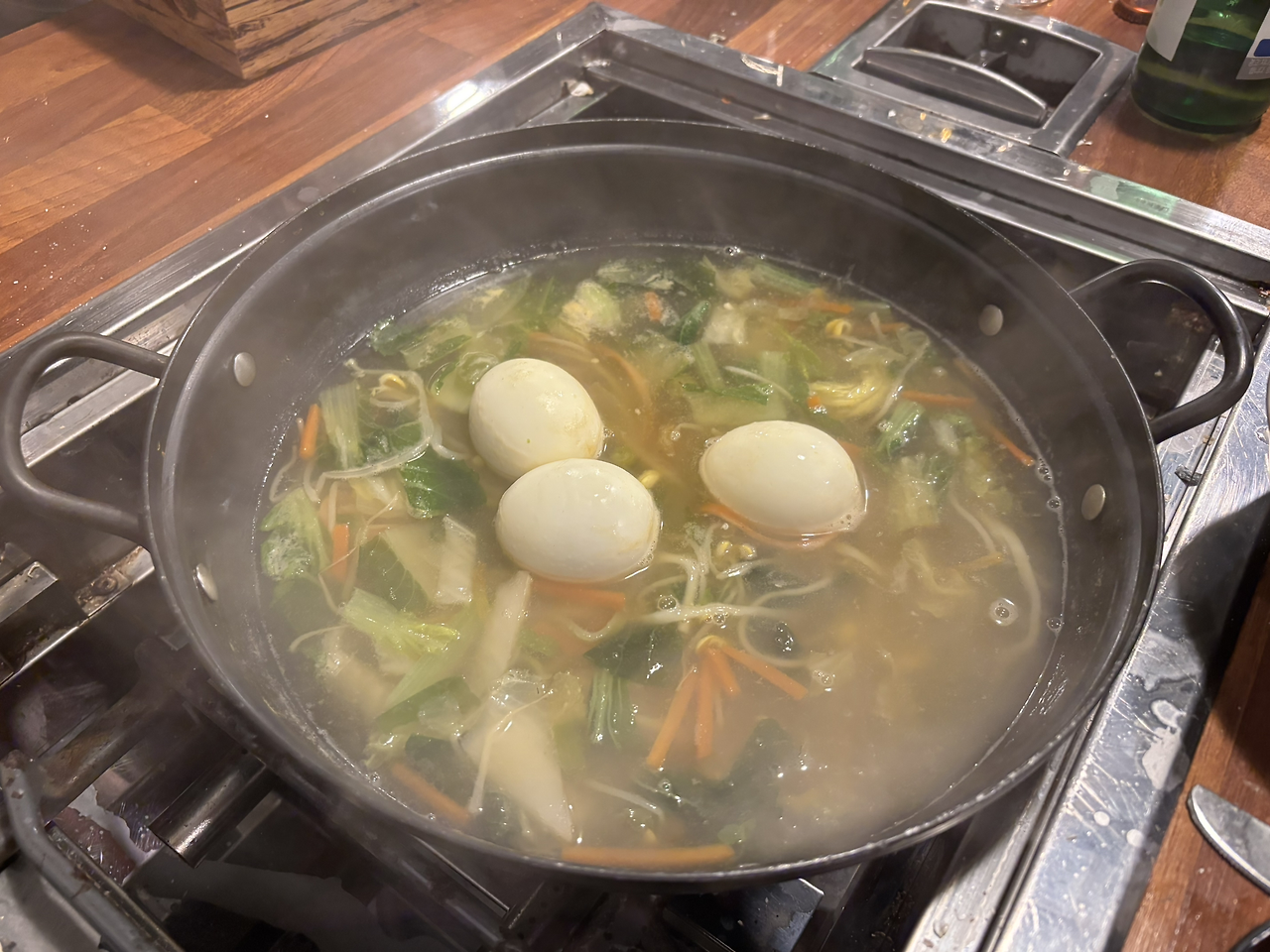 밑에 살짝 보이는 것처럼 계란도 사람 수에 맞춰 쪄지고 있었다.