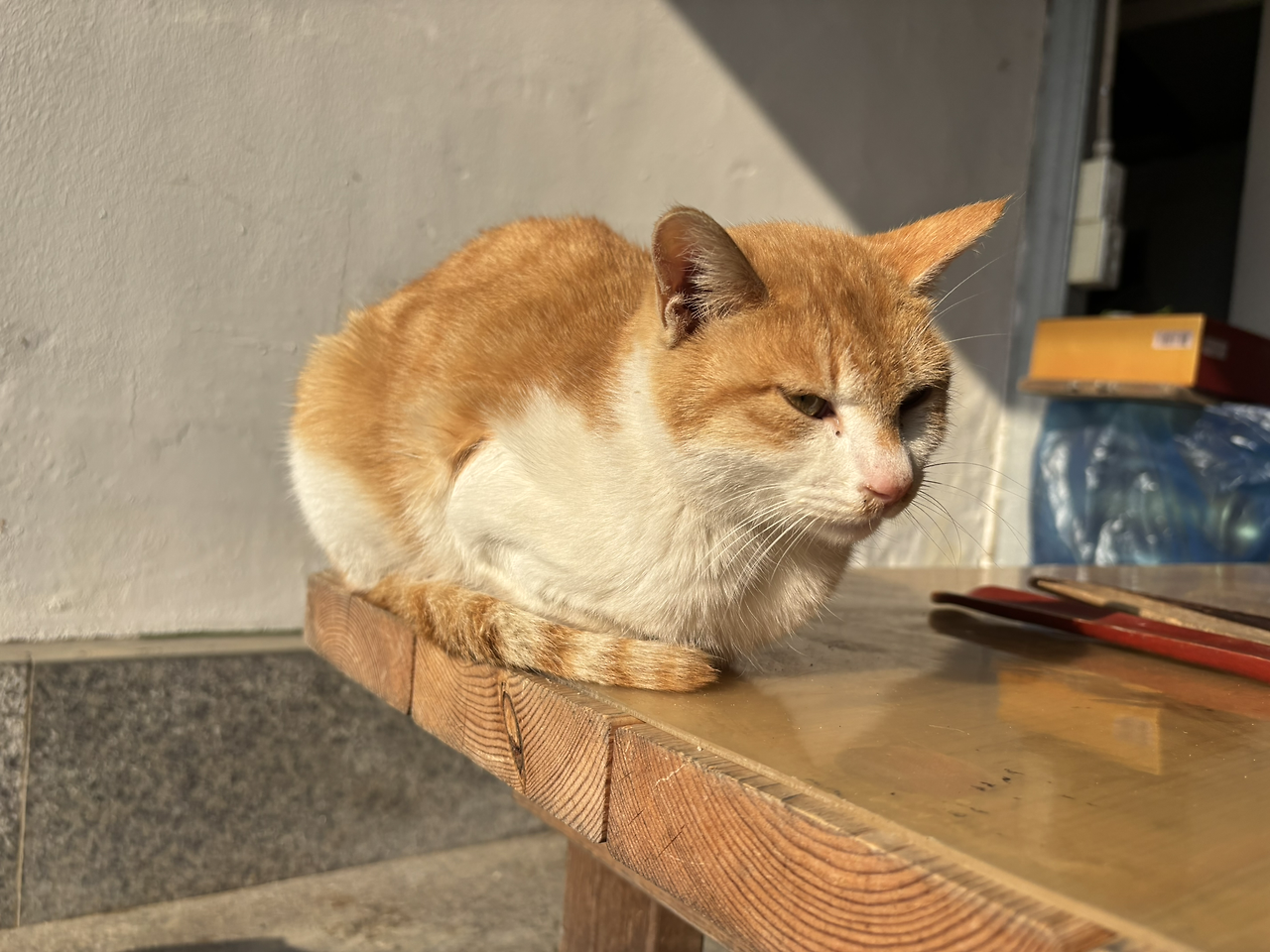 추운 겨울이라 고양이도 움츠리고 앉았다.