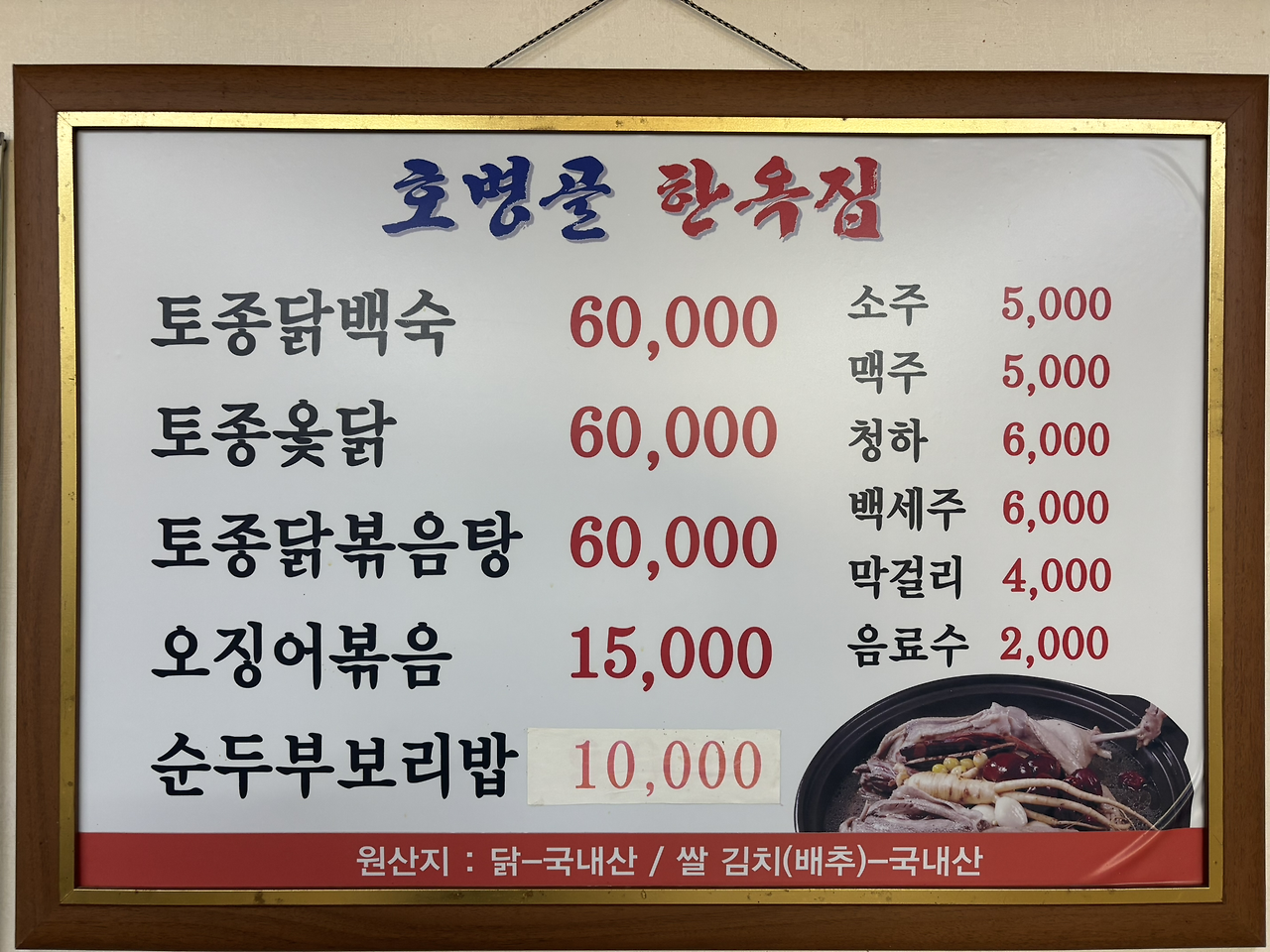 왕방산 자락에 자리를 잡고 있는 호병골한옥집의 메뉴는 단출한 편이다.
