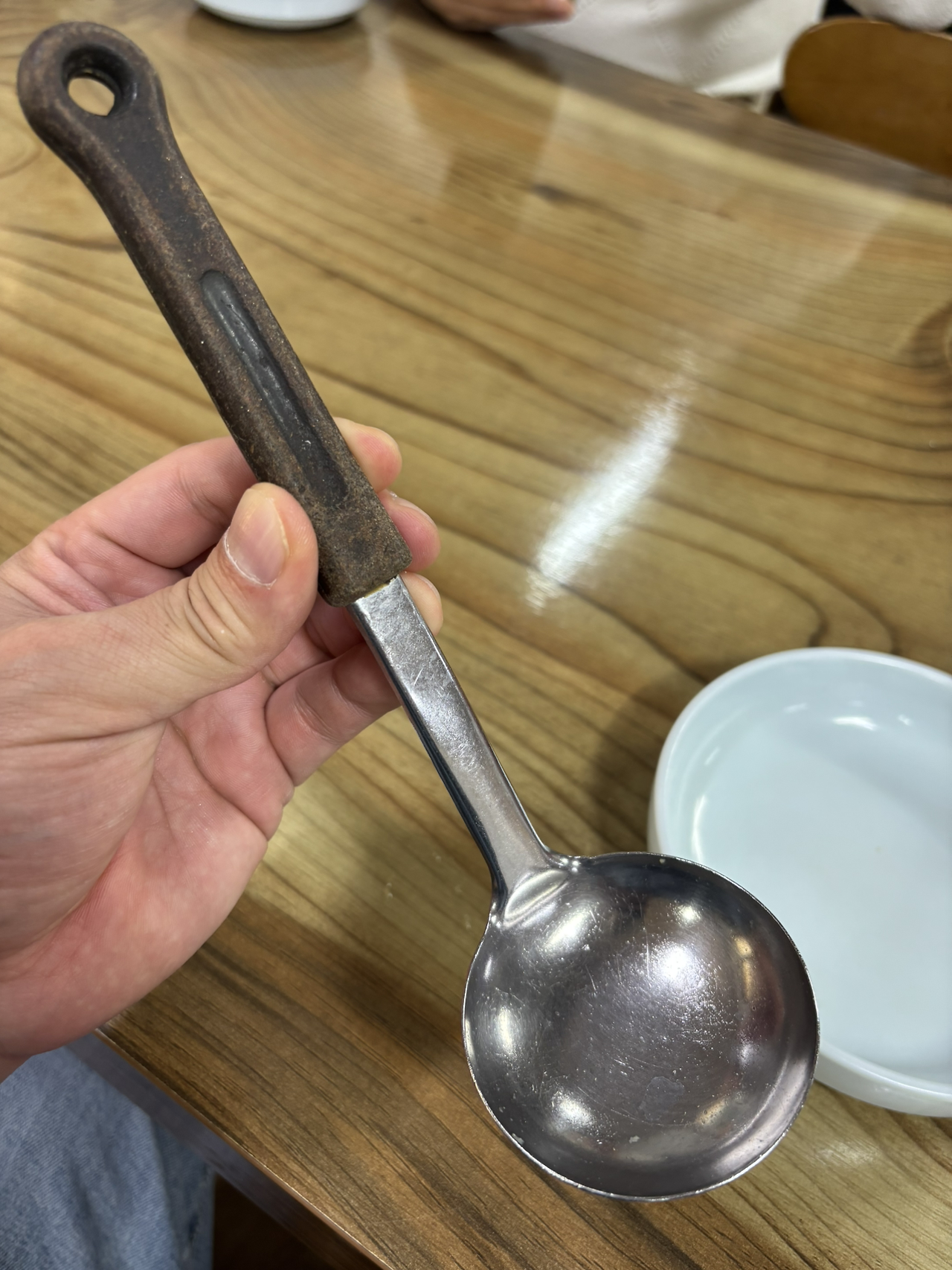 플라스틱 자루가 닳고 닳았고 스테인리스 국자도 생채기가 엄청나다.