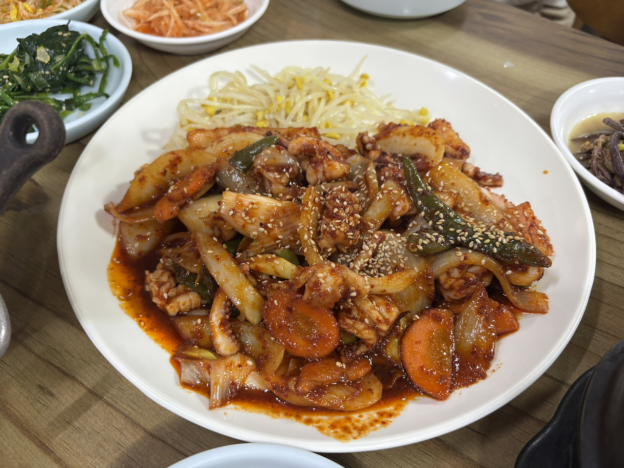 다만, 토실토실한 오징어에 칼집을 내 양념이 두루 배어 식감이 매우 좋다.