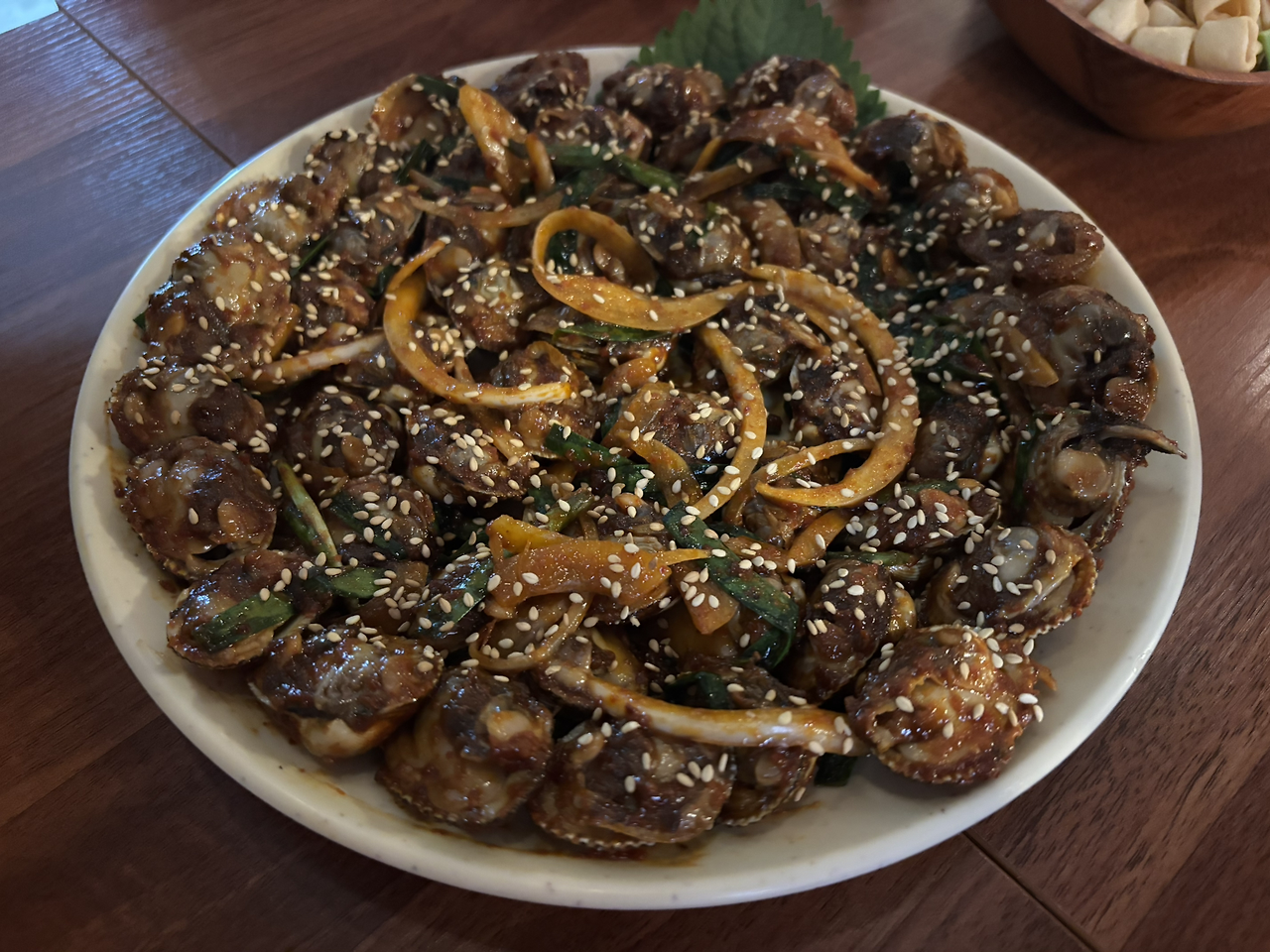 꼬막이 아주 통통하게 살이 오른 것이 식감도 쫄깃하니 소주를 부르는 안주다.