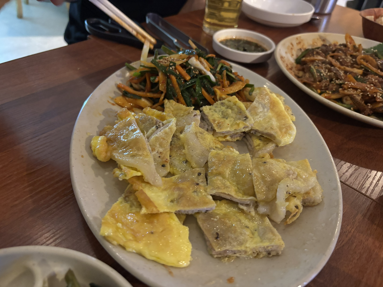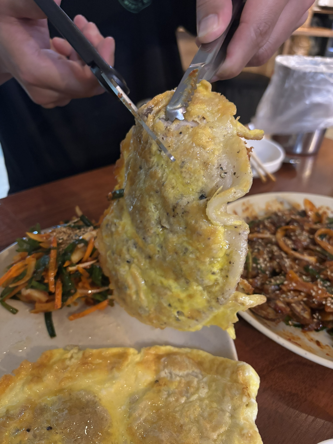 덩어리가 큰 육전을 가위로 잘라 세팅을 했는데 4명이 젓가락질 몇 번 하니 순식간에 사라지고 말았다.