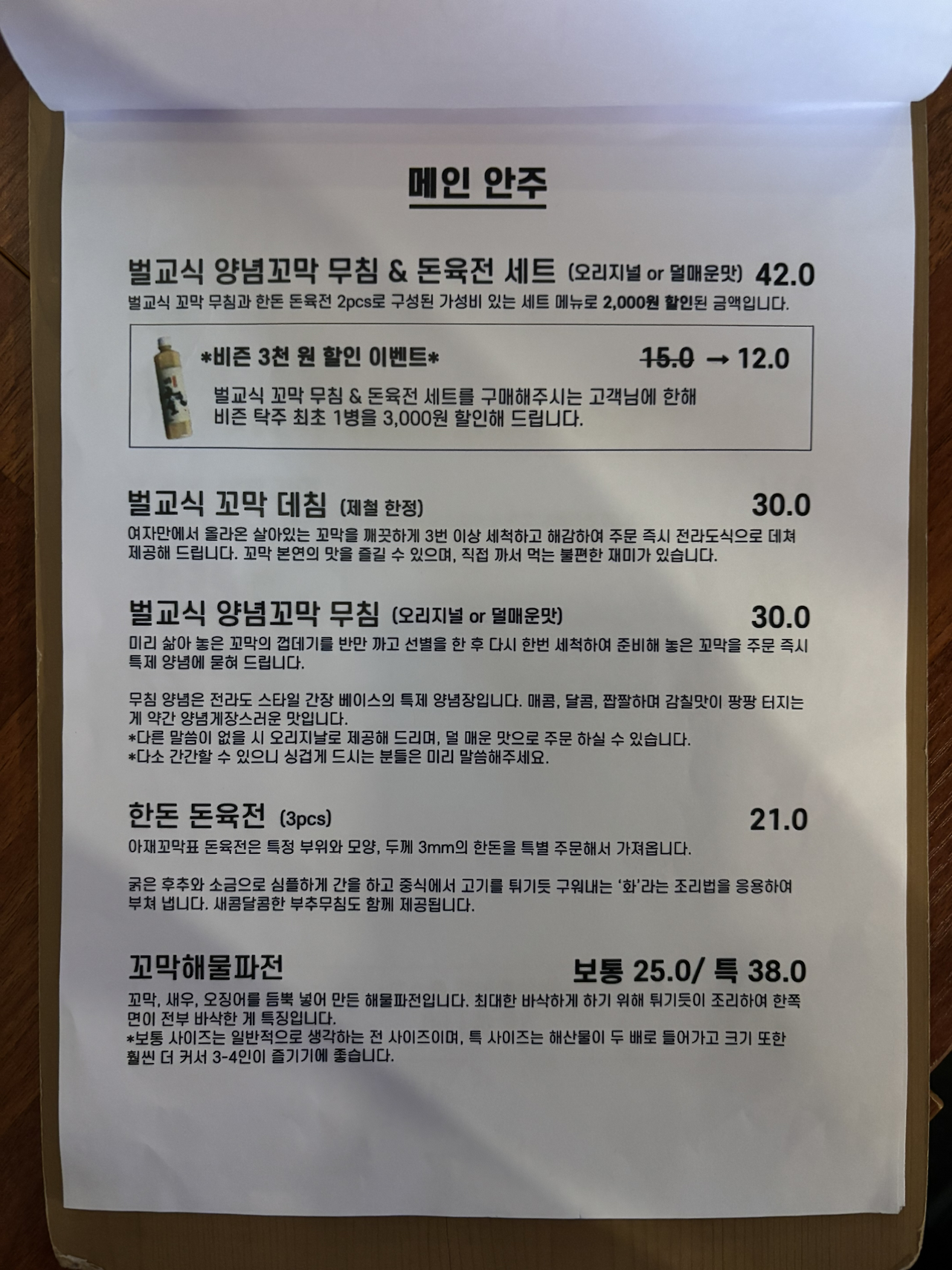 간판이 아재꼬막이라 설마 꼬막 요리만 있을까 걱정이었는데 다른 메뉴들이 있어서 다행!