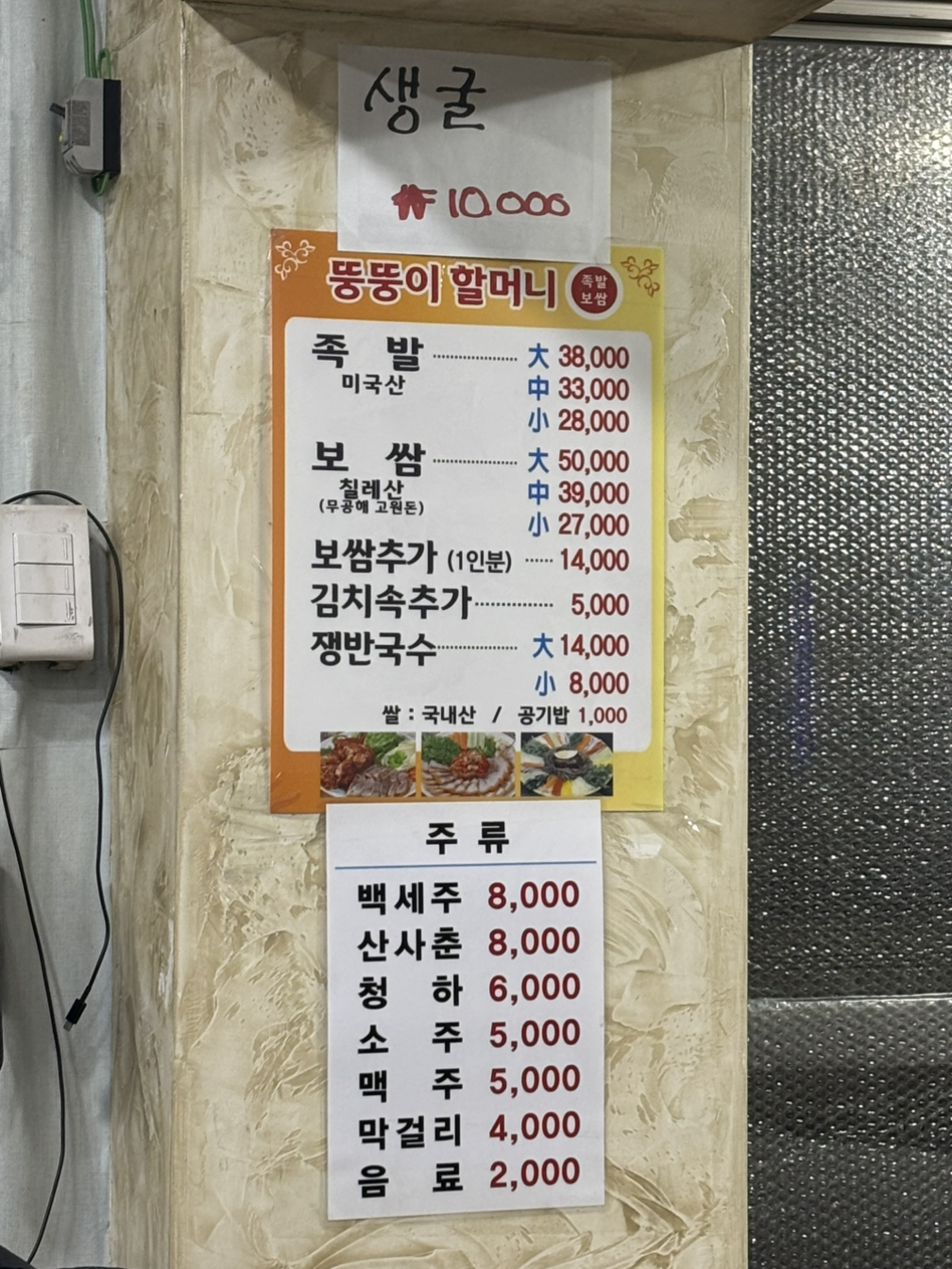 지난번에 왔을 때는 생굴이 없었는데 이번엔 생굴 메뉴가 벽에 붙었다.
