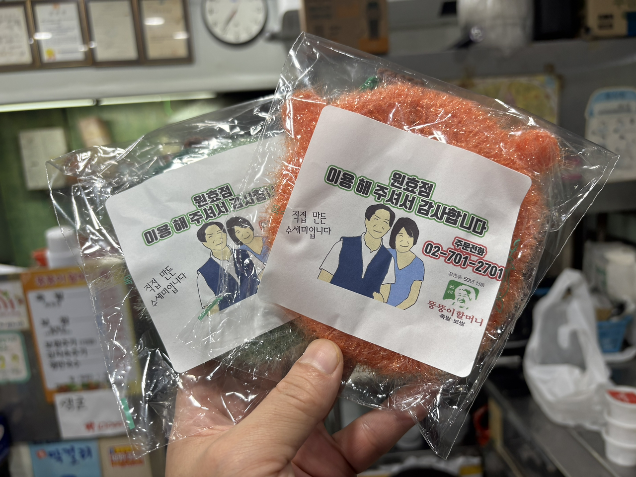 나갈 때 신년 선물이라며 수세미를 주셨다.