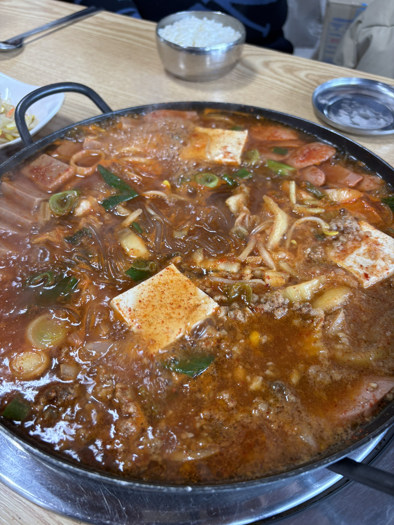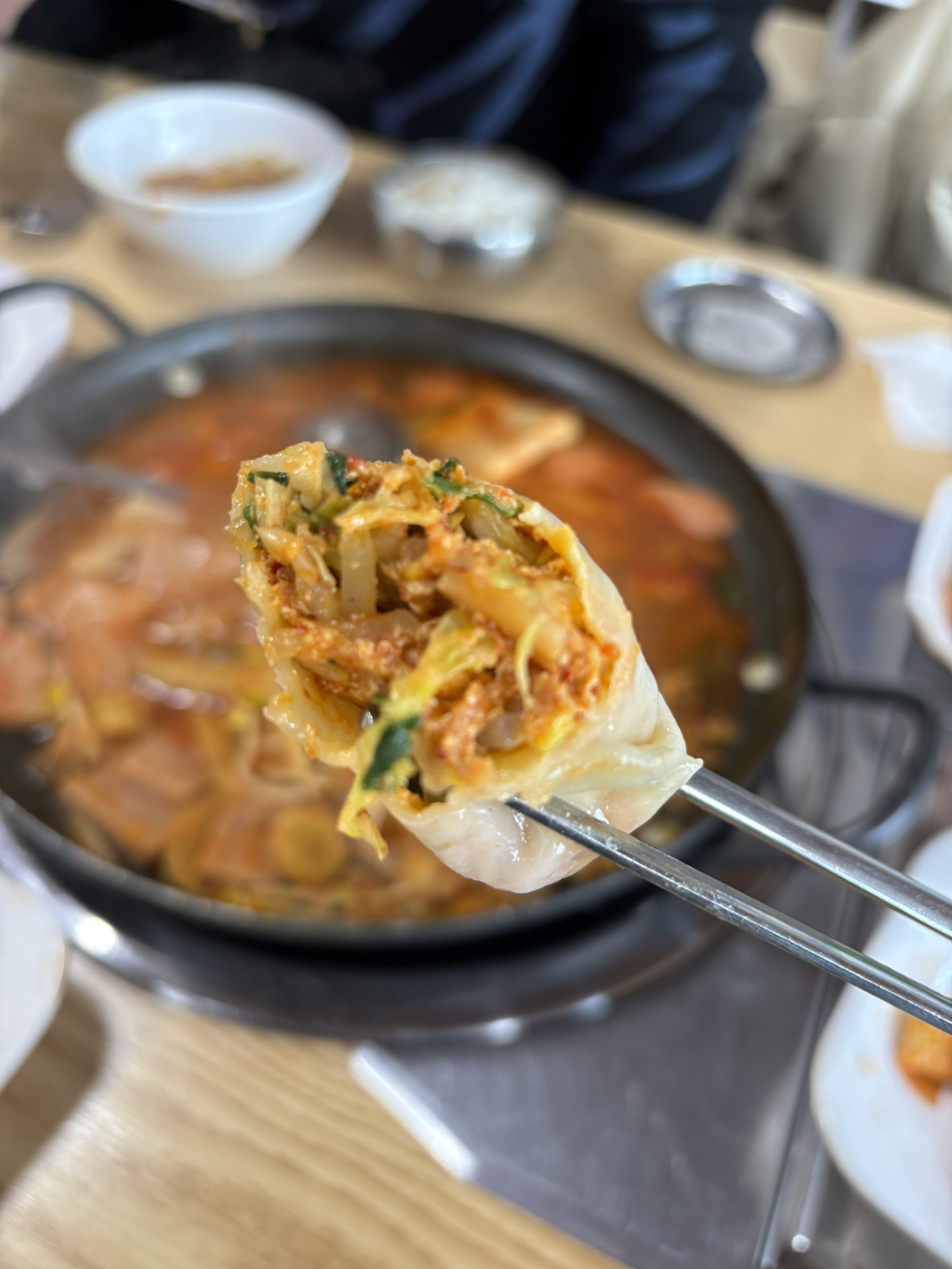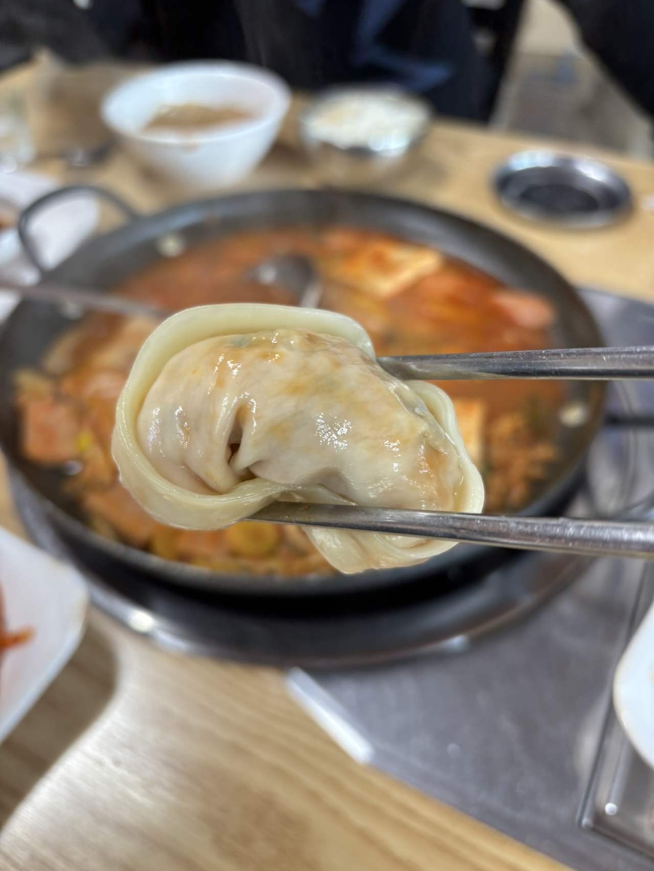 메뉴판에 만두전골에 있기에 부대찌개집에서 뭔 만두를 파나 싶었지만 맛을 보니 충분히 그럴 만도 했다.