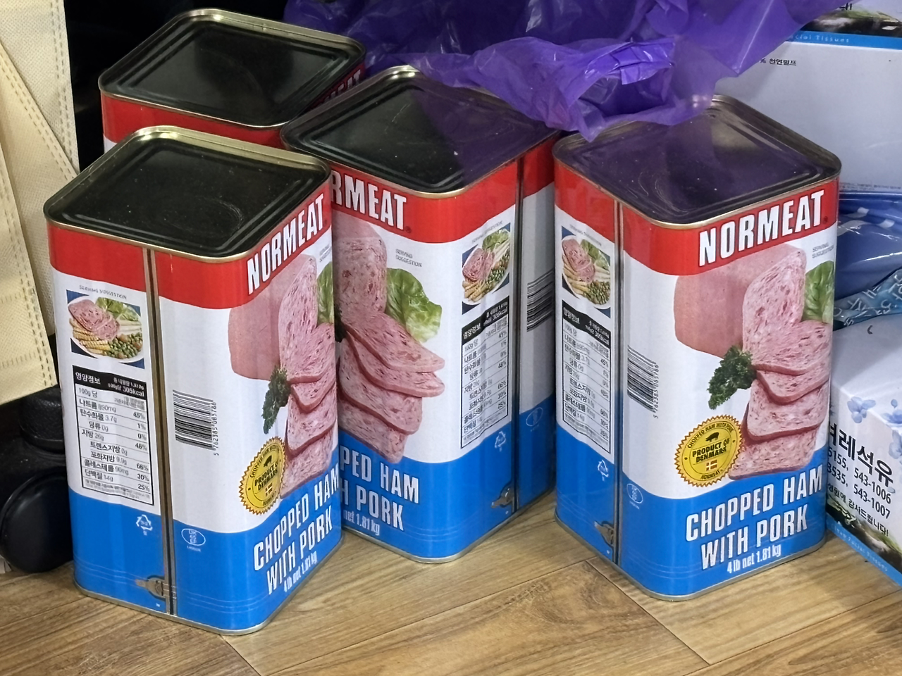 프런트 아래 사각형 대형 햄을 보며 송탄이나 의정부 부대찌개의 특징에 대해 나름의 지식을 쏟아냈다.
