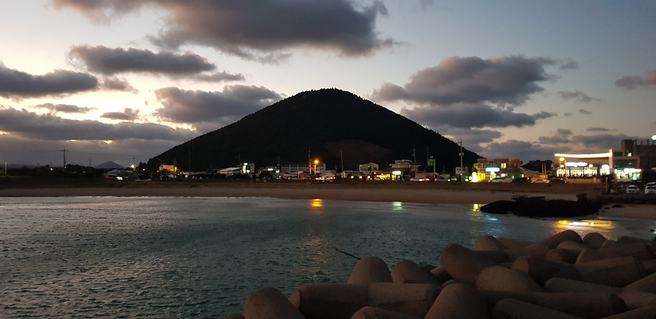 성산에서 촬영한 거라 멋진 노을은 아닙니다.