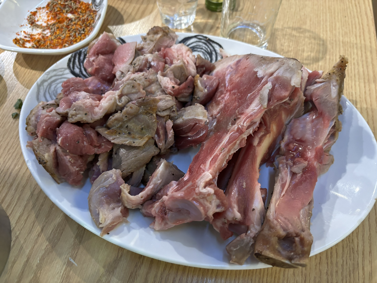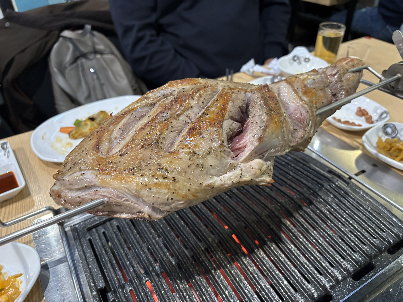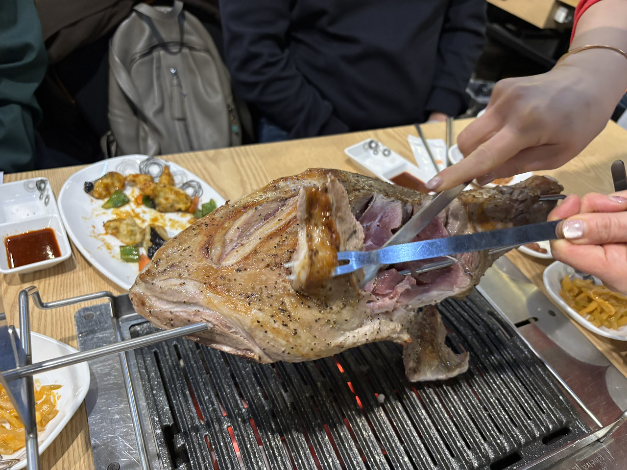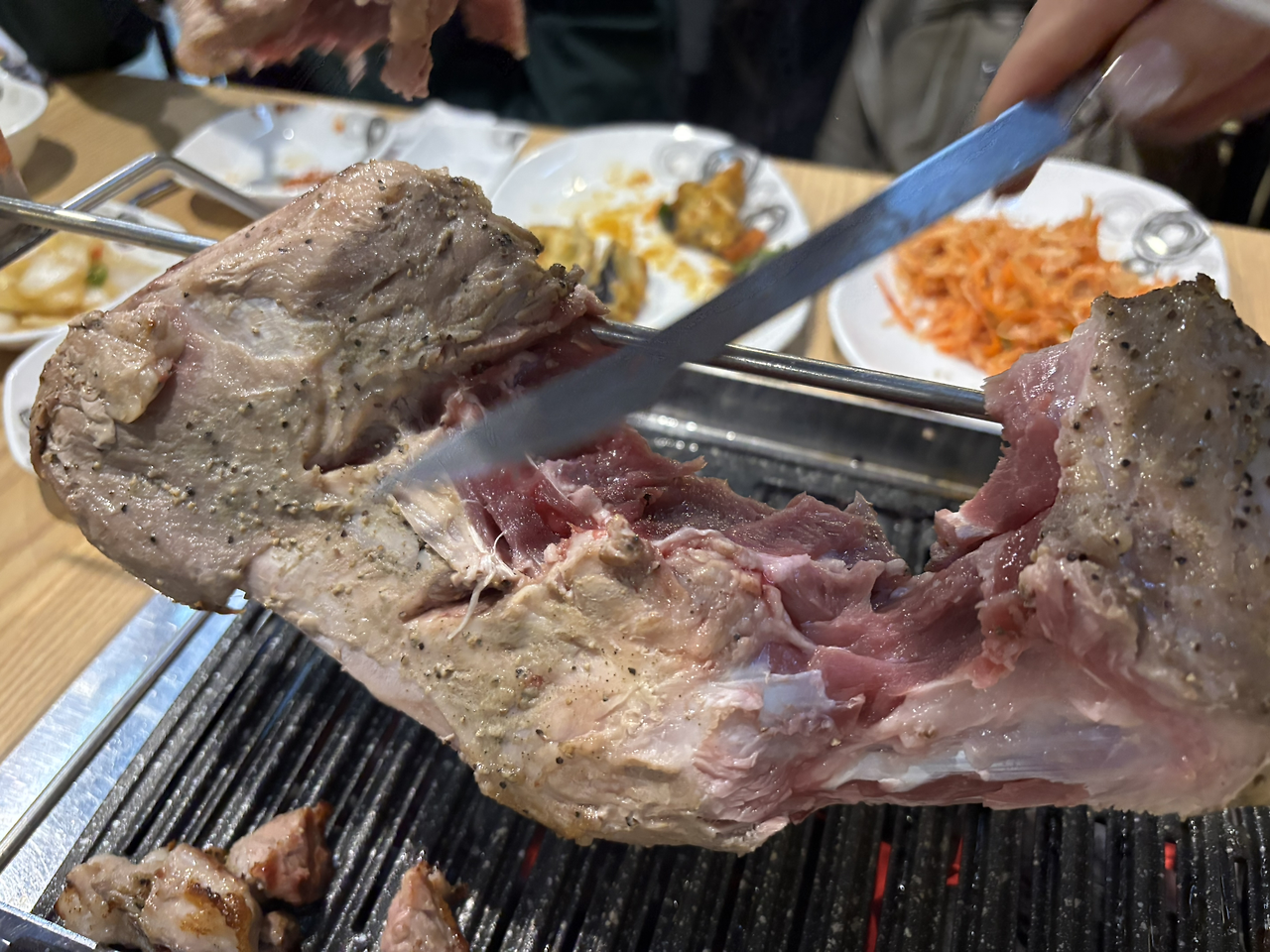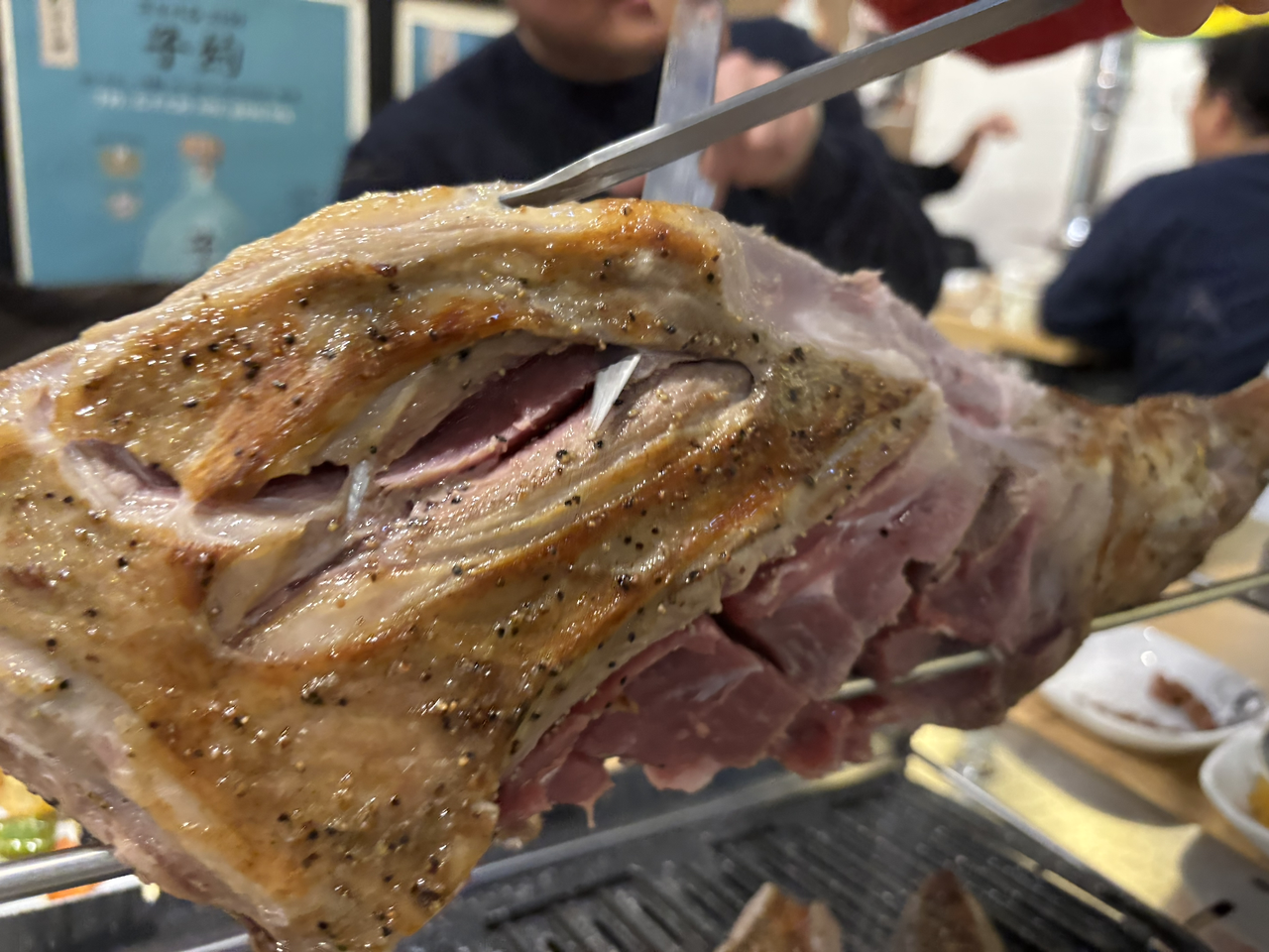 가지튀김을 거의 비워갈 때쯤 되자 드디어 큼지막한 양다리구이가 올려졌다.