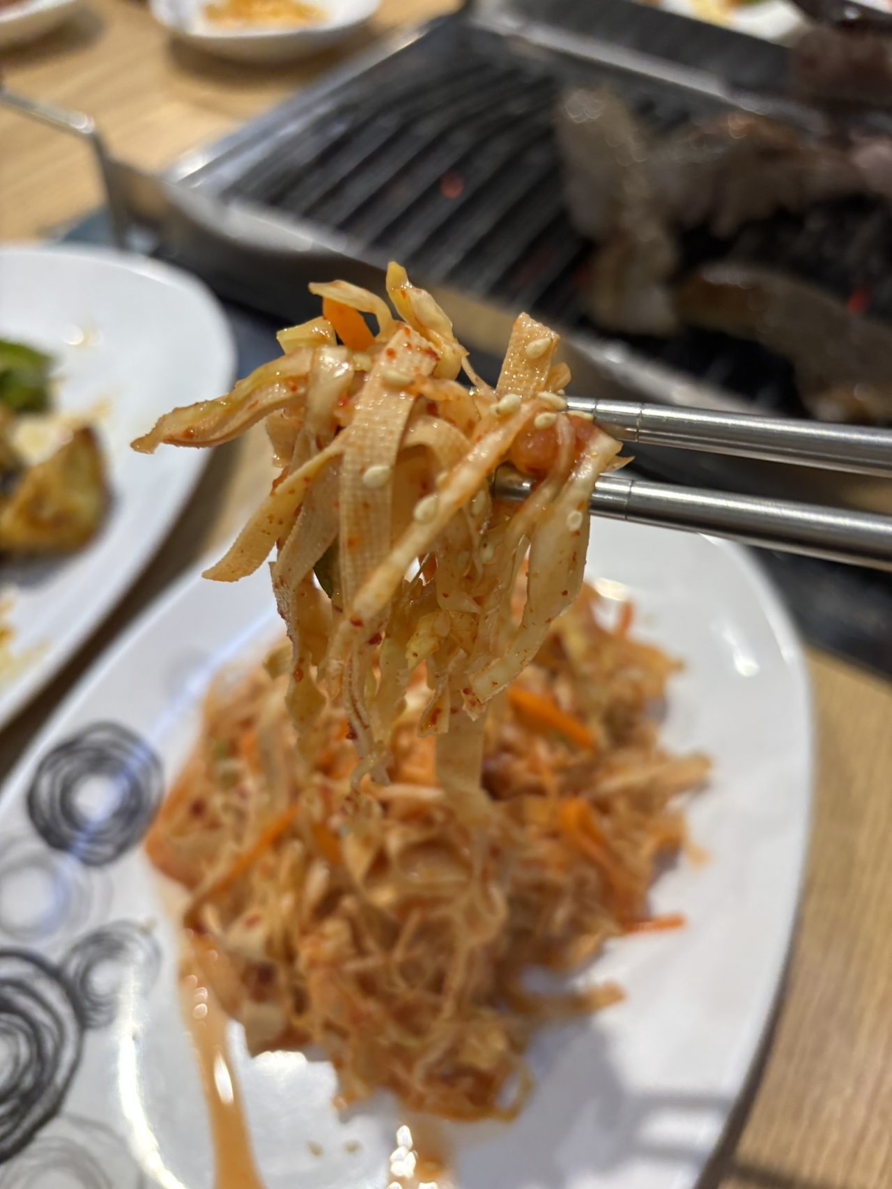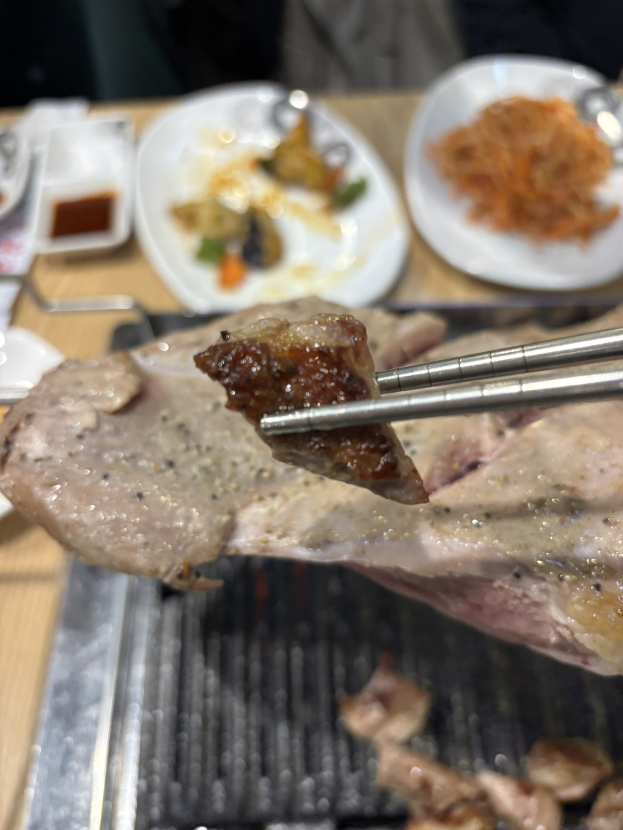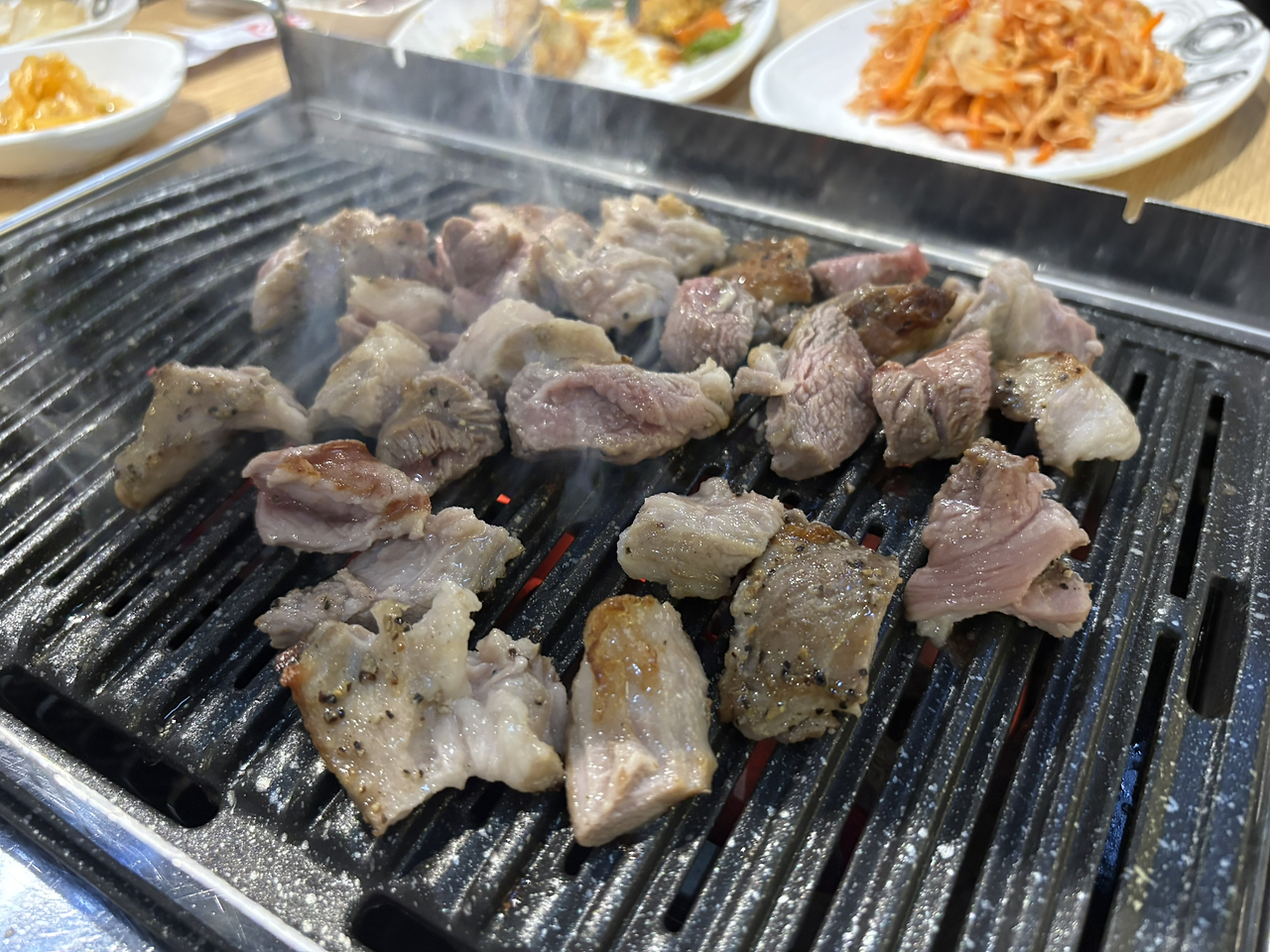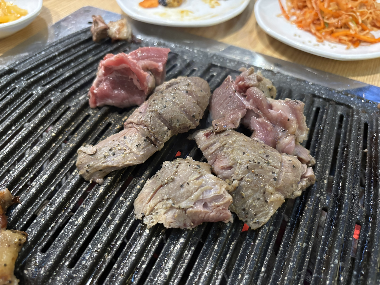 불판에서 핏기가 사라지면 거의 동시에 고기가 사라졌다.