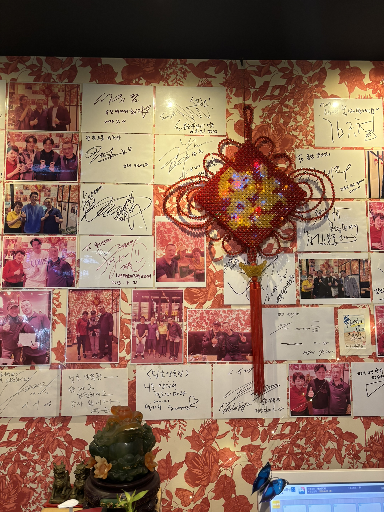 내부에 유명인 사진과 사인이 게시되어 있었다.