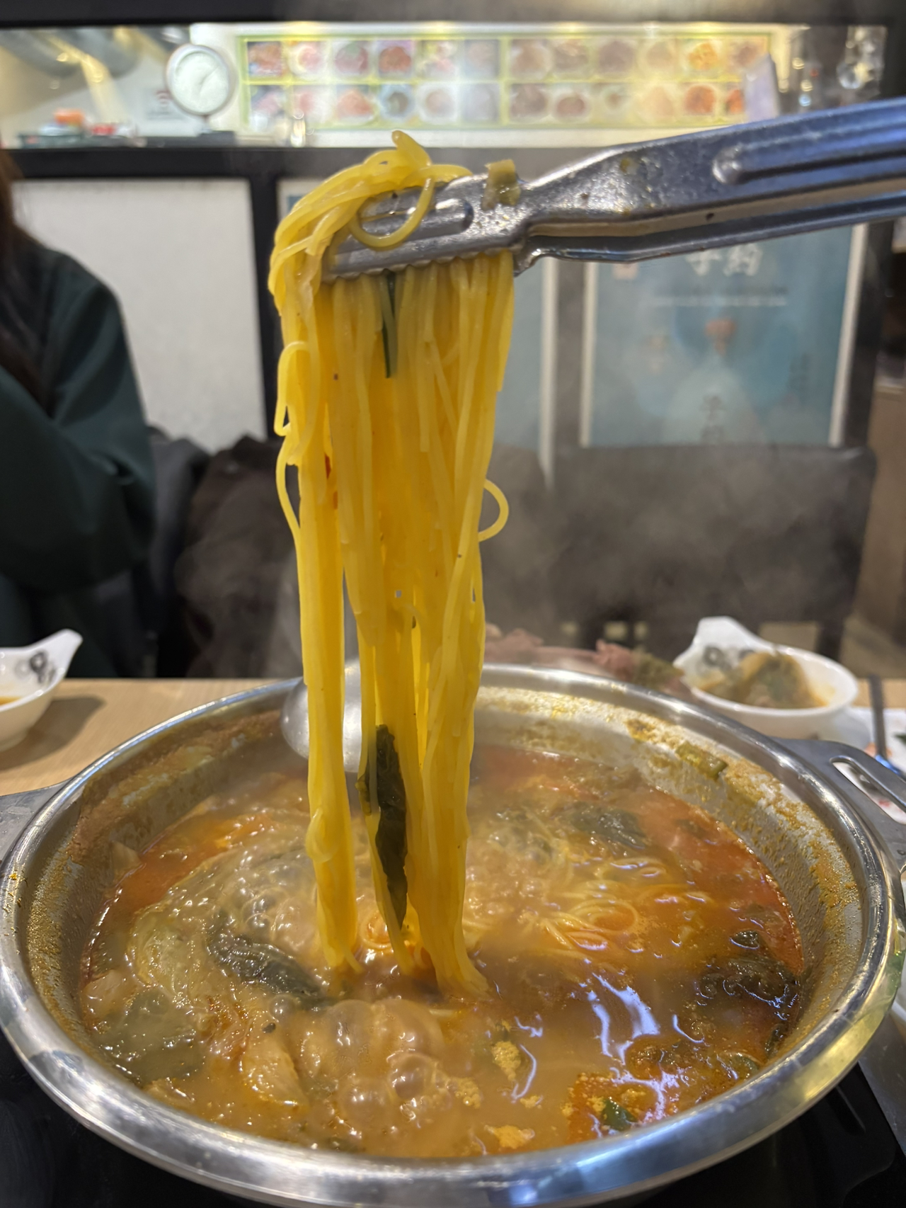고기가 다 떨여졌다 싶을 때 드디어 전골이 나왔다.