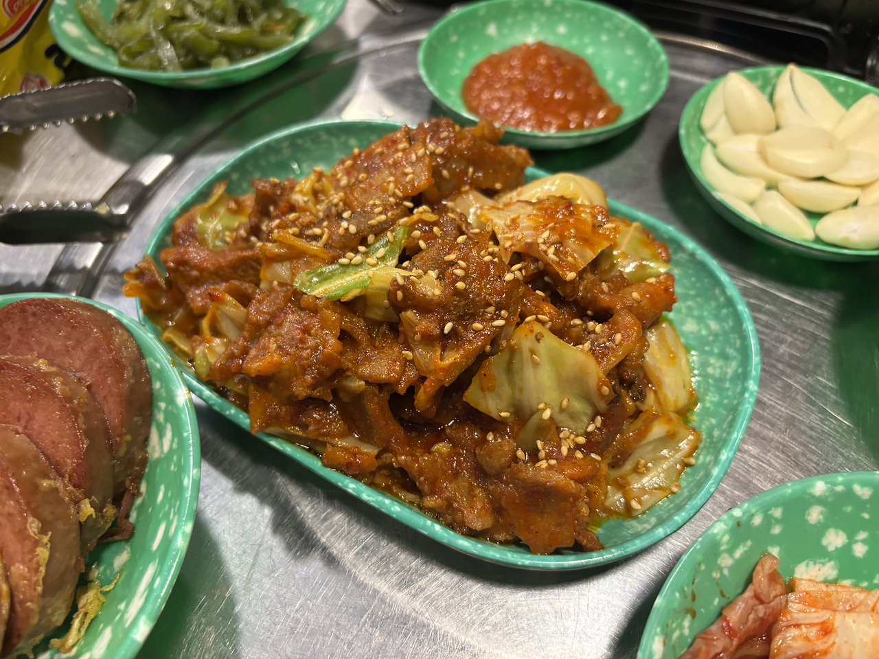 우린 김치찌개 3인분과 고추장불백 1인분을 주문했는데 불백 양이 엄청나다.
