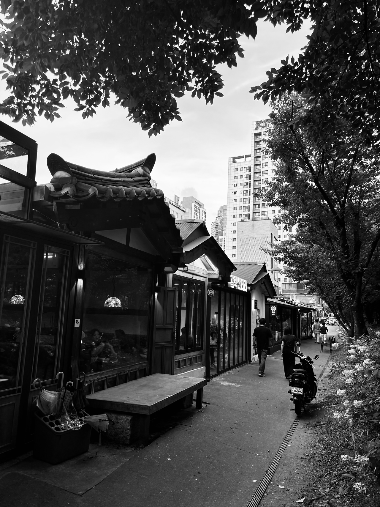 파평윤씨를 나서며 흑백 필터로 식당 앞모습을 촬영해 봤다.