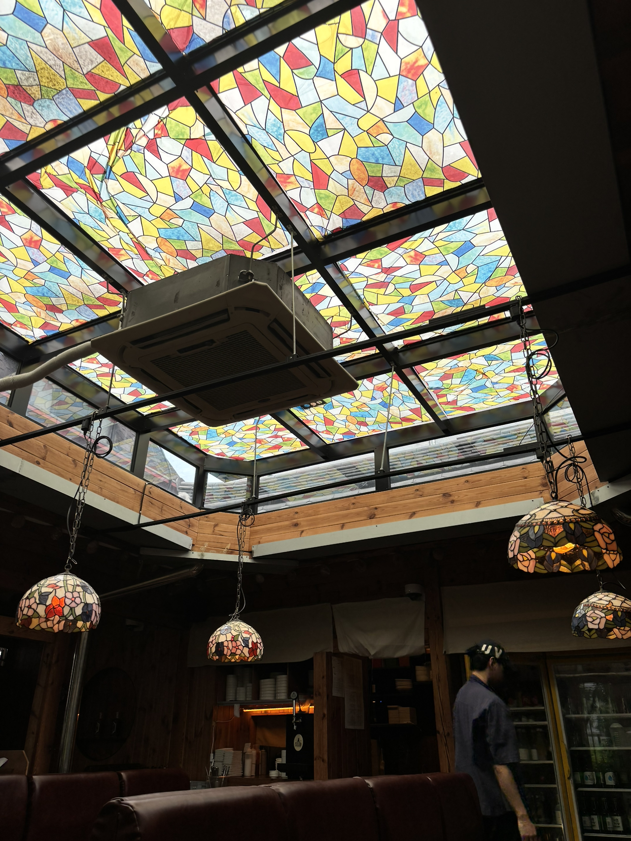 한옥집 마당(중정)이었을 공간에 천정을 유리로 막아 하늘창을 냈다.