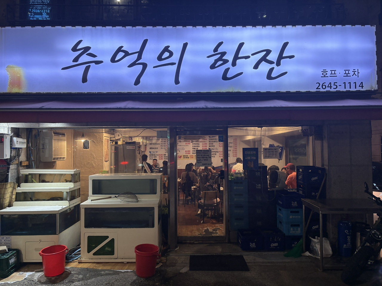 <추억의 한잔>은 실내포차처럼 운영되는 곳인데 늦게 가면 자리가 없을 정도로 인기가 많다.
