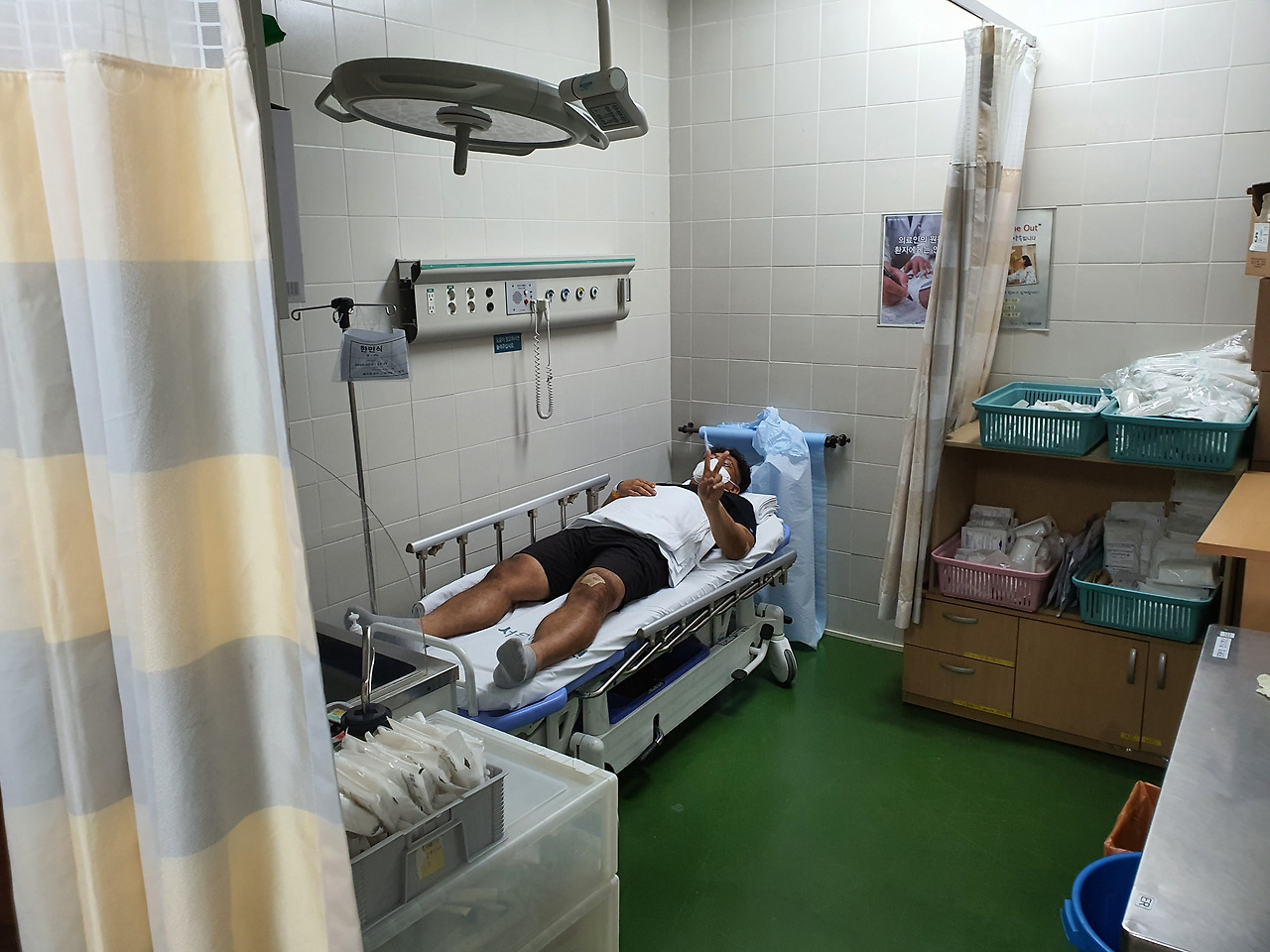 흐릿하게 복도의 천장에 박힌 조명들이 휙휙 지나가는 게 보였다. 마치 영화 속 주인공의 시각으로 본 듯한 모습이었다. 반쯤 생각이 없어서 그런 상황인지 모르겠지만 어쨌든 병실로 들어오며 먼저 입원해 있던 룸메이트와 인사도 나눈 것 같다. 모든 행위가 자의에 의해 행해졌지만 이상하게도 기억엔 선명하지가 않다. 이런 신박한 경험이 다 있나! ^^