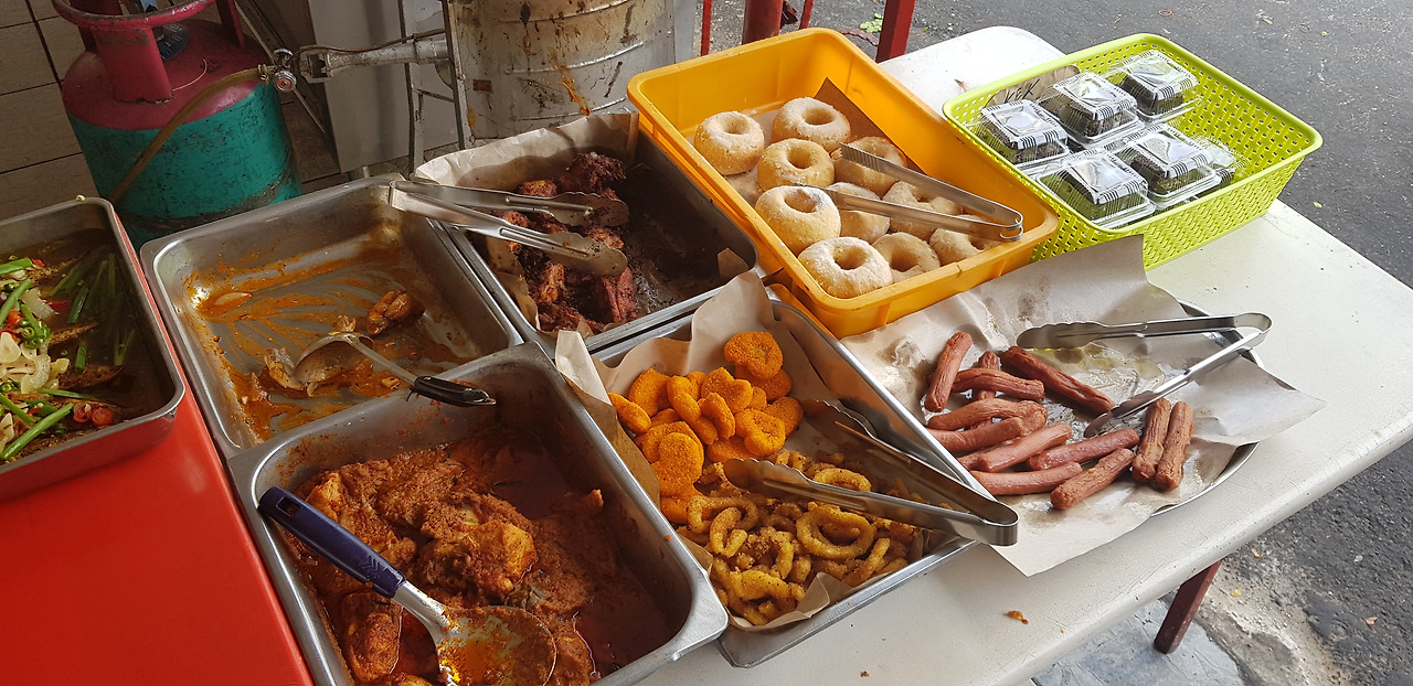 그 와중에 나는 진열된 말레이시아 노점 음식을 촬영했다.