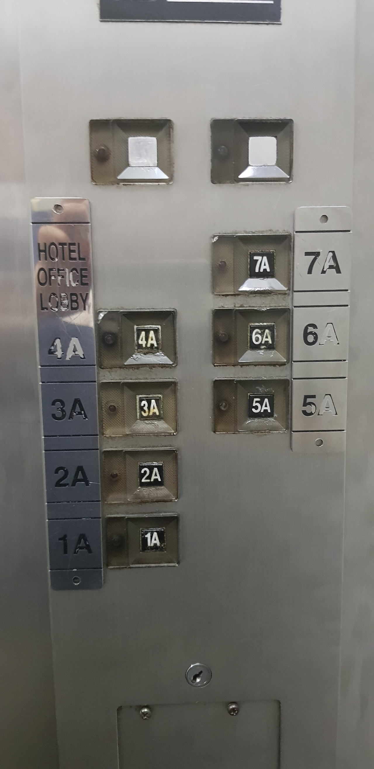 호텔 엘리베이터 버튼을 유심히 살펴보니 이상한 기호가 있었다.