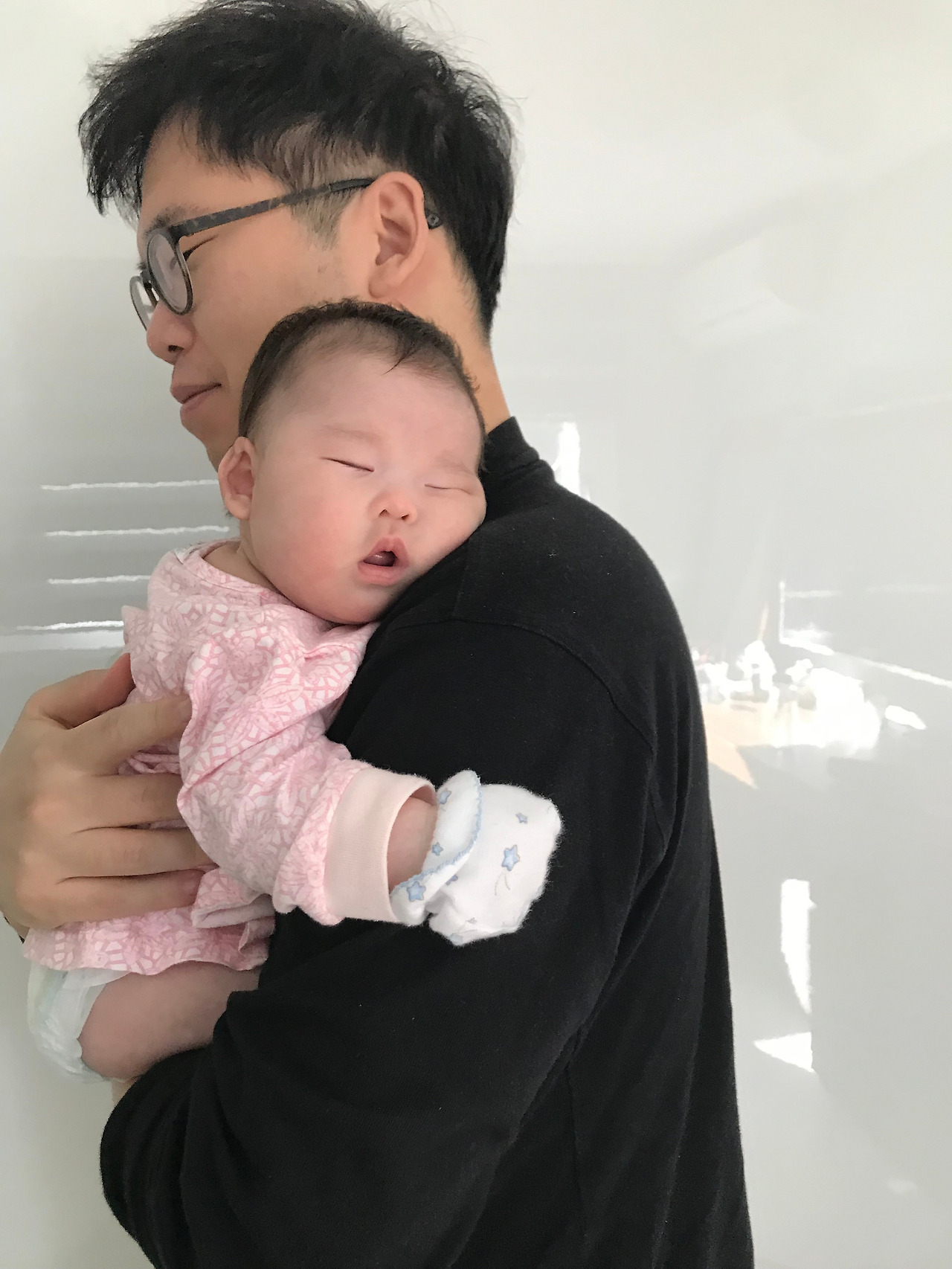 그래서 엊그제 재하가 갑자기 오열을 하길래 ‘좋게 말해도 될 것을.. 신종 갑질 하기는...’이라 투덜거리며 안았다. 그래도 더 크게 울어대는 것이었다. 당황하며 흔들거림 효과를 주려고 다이아몬드 스텝까지 밟아가며 돌아다녀도 그치지를 않았다. 아내가 이리 줘보라 하기에 건네주었더니 조금 있다가 응가를 크게 했다. 배가 아파서 그렇게 크게 운 것 같았다. 굉장히 미안했다. 배 아파서 화장실 가야 하는데 누가 자기를 안고 흔들어대면 울화가 치미는 건 당연했다. 나였어도 눈물이 날 일이었다. 해결을 하고도 더 울어대길래 배변의 여운이 아직 남아있나 보다고 단순히 생각했었다.