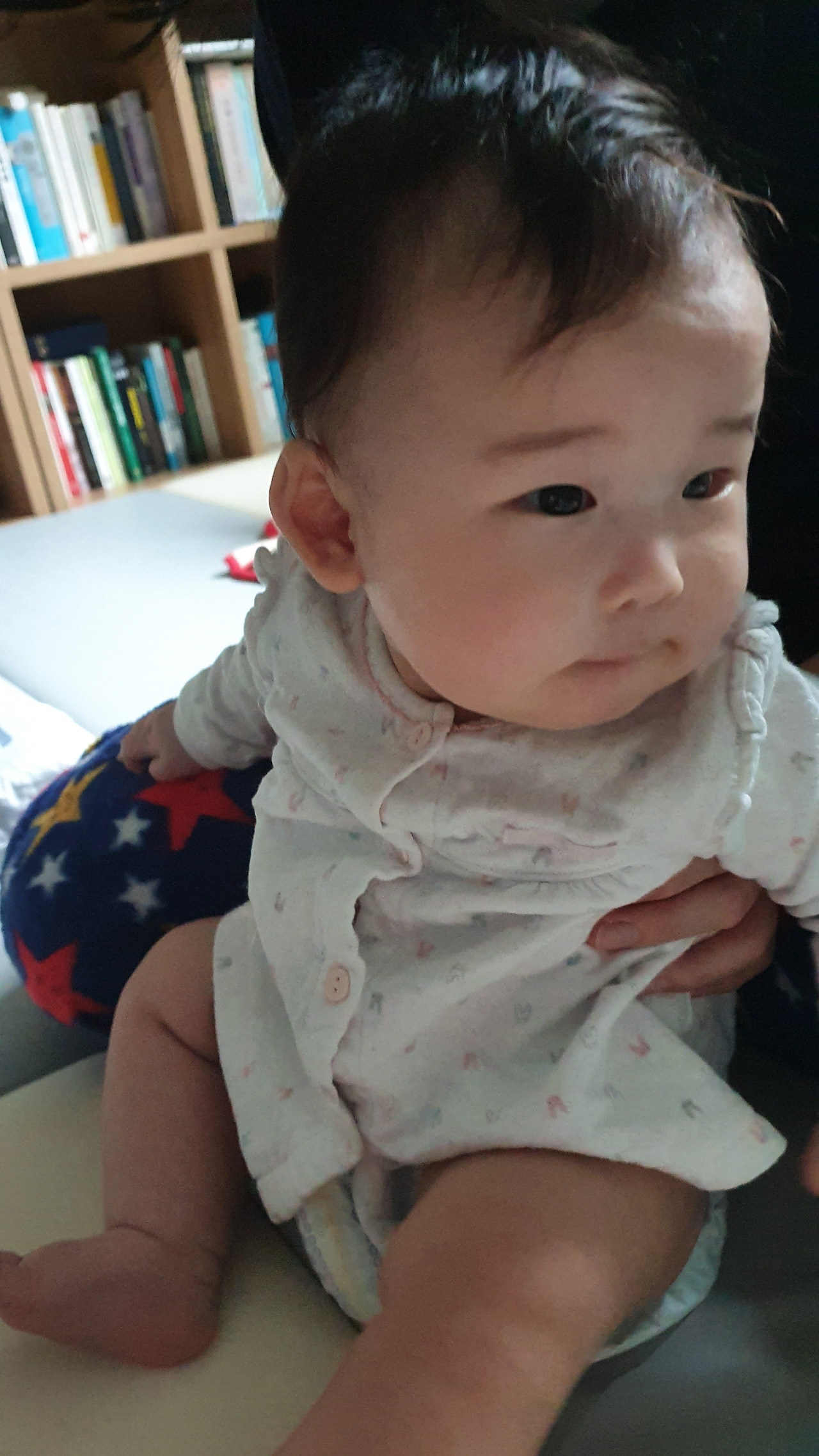 당연히 다리 힘은 점점 좋아져 겨드랑이에 손을 넣어 균형을 잡아주면 곧잘 서 있었다. 엄마도 아빠도 하체가 튼실한 편이라 우리 딸도 튼튼한 다리와 허벅지를 자랑했다. 소개팅은 저녁때 바지를 입고 해야 할 것 같다는 생각도 들었다. 아무튼 다리처럼 손도 팔도 힘이 좋아 ‘혹시 아기장수가 태어났나’ 해서 겨드랑이를 살펴봤다. 날개는 없고 때만 있었다.