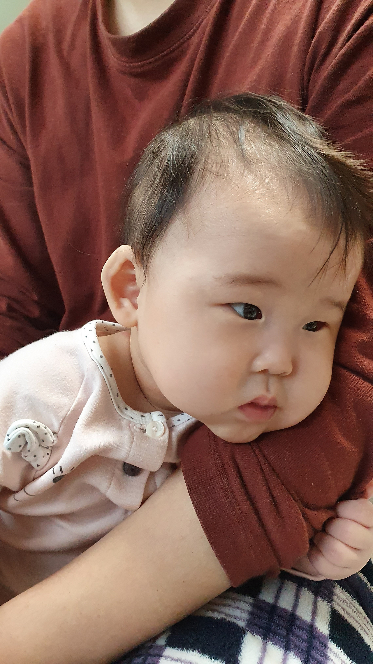 문제는 되집기를 그전부터 하고 있었기 때문에 이리저리로 굴러다니는 게 가능해진 것이었다. 옆에 작은 공간만 있어도 데굴데굴 구른 후 뿌듯한 얼굴로 나를 쳐다보고는 한다. 자다가 새벽 즈음에 따가운 시선이 느껴져서 깨면, 이재하가 스핑크스처럼 엎드려 매의 눈을 하고는 나를 바라보고 있다. 우리 딸이 엄마를 바라보는 눈빛은 사랑이 가득 차있었는데, 아빠를 바라볼 때는 욕망이 가득한 뜨거운 시선이었다. 보통 피곤해서 모른척한 채 눈을 감고 자는 척을 한다. 눈치는 빨라서 그럴 때면 손을 휘두르며 뺑끼(?) 부리지 말고 일어나서 빨리 자기를 안으라고 한다. 가끔 자다 깬 내 얼굴이 웃기는지 영아 주제에 어른을 비웃을 때도 있다. 그러면 나는 말한다.