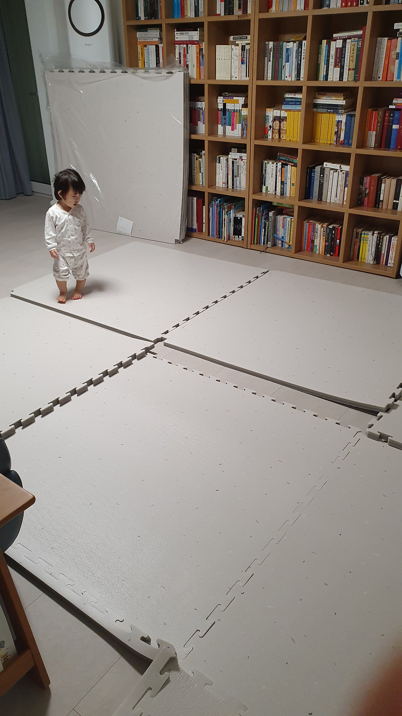 아내가 매트를 사겠다고 했다. 걷지 않는 우리 딸 때문이었다. 아랫집에서 재하 혹은 재하 보호자를 보러 곧 올라올 것 같다는 생각을 하긴 했다. 재하는 아랫집 아저씨 오시면 마중도 뛰어서 나올 태세였다. 거실 바닥 색인 사하라 라이트가 마음에 들어서 매트를 까는 게 썩 마음에 들지 않았다. 하지만 매달 밑에 집으로 롤 케이크 조공을 하다가는 가계에 꽤 타격이 갈 것 같아 어쩔 수 없었다. 엄밀히 말하면 아내가 국책사업으로 추진한 것이라 나는 발언권이 없었다. 심성 여린 아내는 재하가 쿵쿵거릴 때마다 심장이 쿵쿵거린다고 했다.