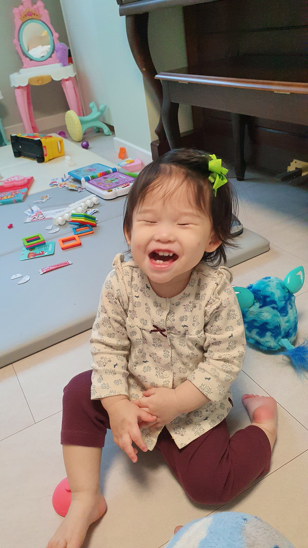 말도 못 하면서 요구사항은 많아진다. 특히 외모에 부쩍 관심이 많아지는지 머리핀을 세네 개씩 꽂으려고 한다. 그러고 나서는 거울 앞에 가자고 하여(당연히 안겨서) 자기 얼굴을 뿌듯하게 보곤 한다. 음악이 나오면 춤을 추는데 그 모습을 본 재하 큰 이모가 대견하다는 듯이 말했다.