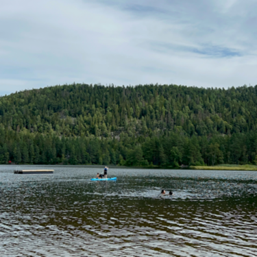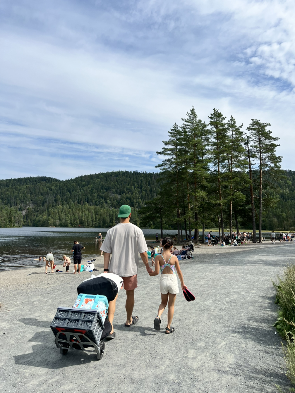 덴마크 언니가 여름휴가를 오면서 사온 고기가 냉장고에 남아있었다. 덴마크산 삼겹살과 맥주 두 캔을 아이스박스에 넣었다. 아이들의 음료와 물도 넉넉하게 챙겼다. 기억을 더듬어 보니 그리들을 사고 처음으로 고기를 구워 먹은 곳도 이 호수였고, 코로나 전 덴마크 언니가 노르웨이로 여행을 왔을 때, 뭐라도 더 보여주고 싶어서 같이 갔던 곳도 이 호수였다.